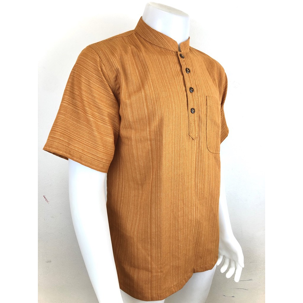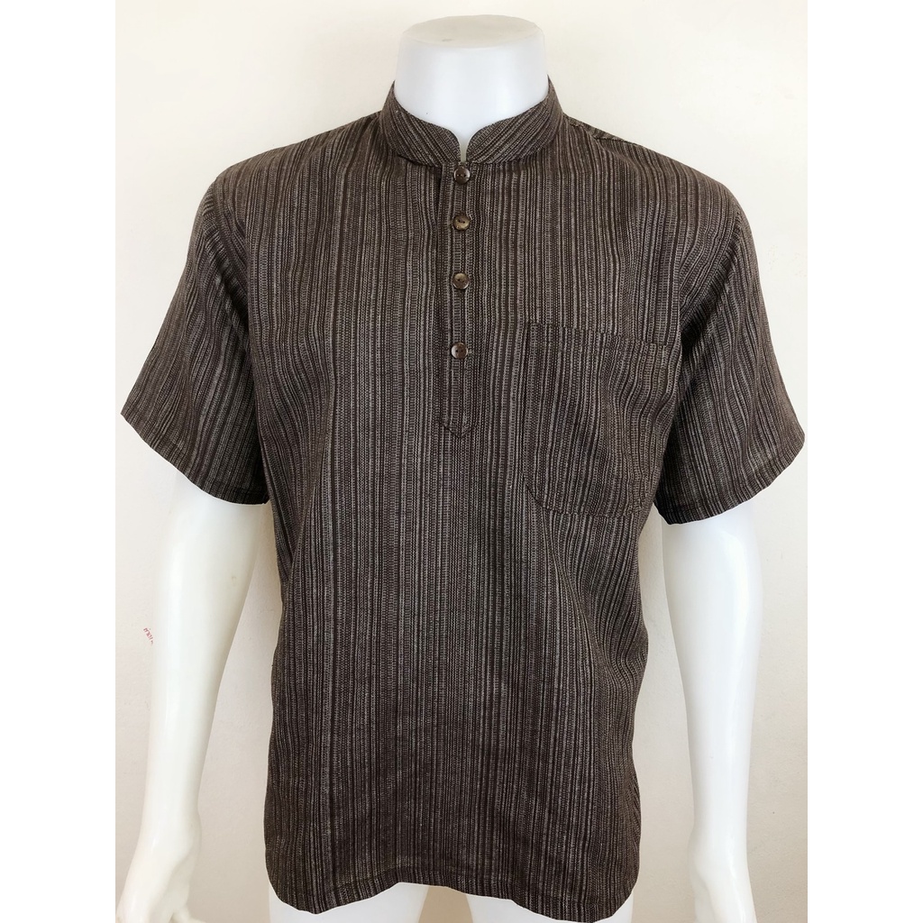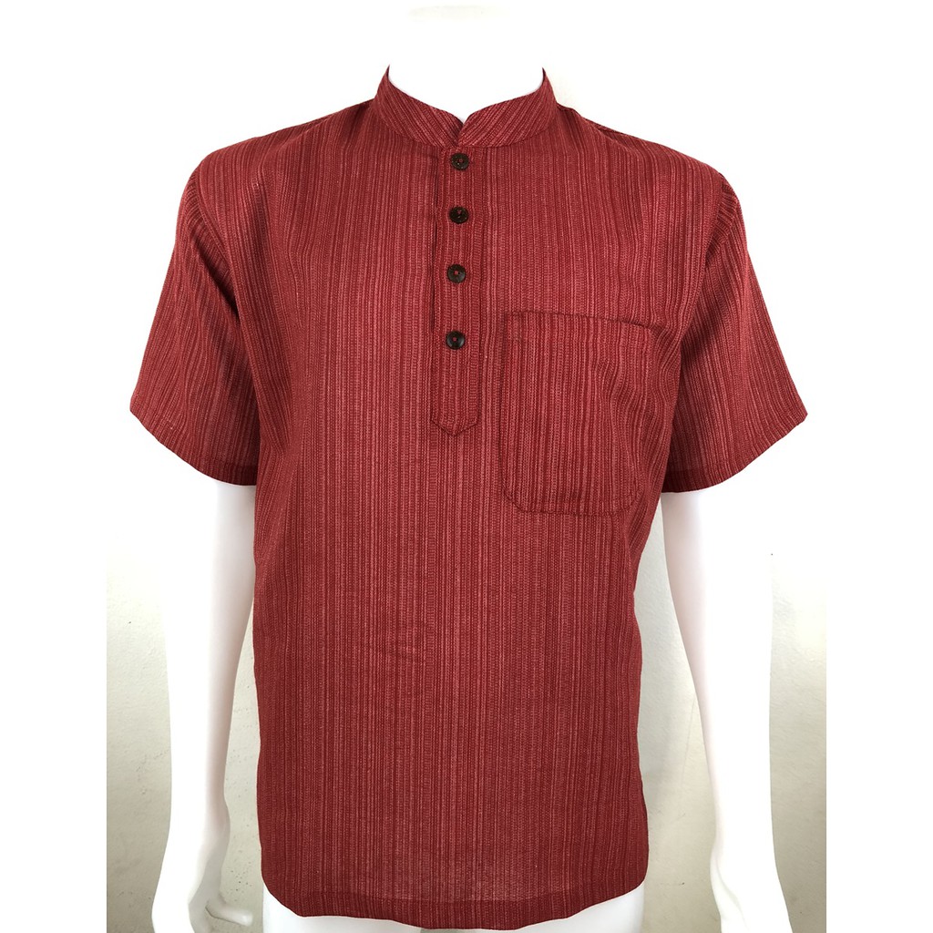 เสื้อผ้าฝ้าย ผ้าพื้นเมือง (TC) คอจีน กระดุมกะลา 4 เม็ด แขนสั้น