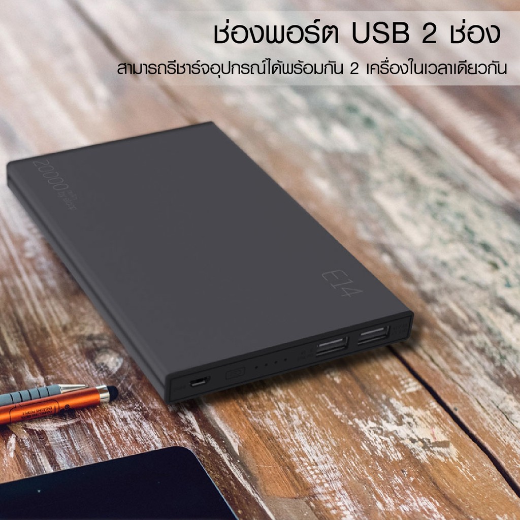 [ราคาพิเศษ 619บ.] พร้อมส่ง Eloop E14 แบตสำรอง 20000mAh (2 ช่องชาร์จพอร์ต USB-A) -30D