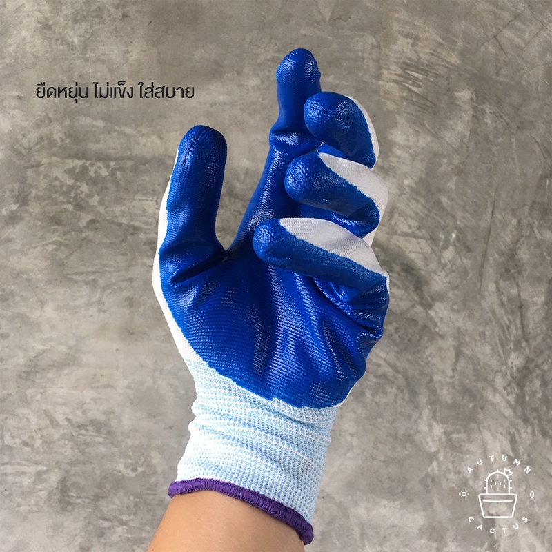 ✋ ถุงมือทำสวน ถุงมือผ้าเคลือบยาง ใส่สบาย ยืดหยุ่น ป้องกันหนาม ขนาด free size ✋
