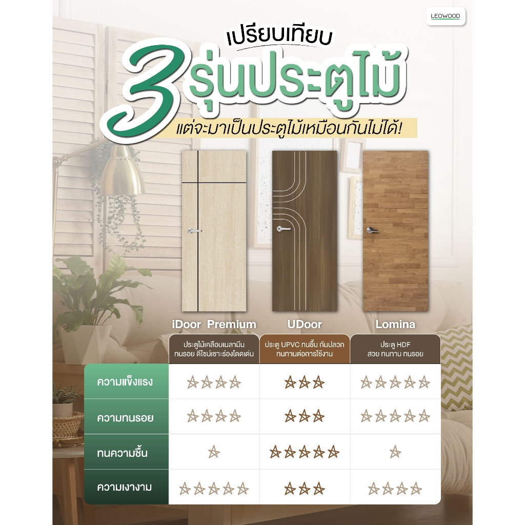 Leowood ประตูไม้เคลือบเมลามีน ใช้สำหรับภายใน iDoor S4 ขนาด 3.5x90x200 ซม.