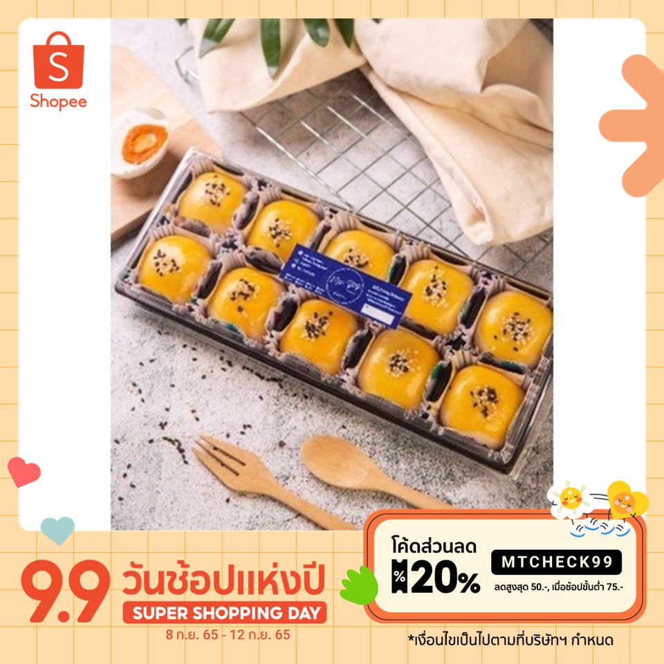 เปี๊ยะไข่เค็มลาวา10ชิ้น by Mae Ying bakery สูตรชาววังอบควันเทียน แป้งบาง ไข่เค็มลาวาแน่นๆเน้นๆ หอม อร่อย 100%