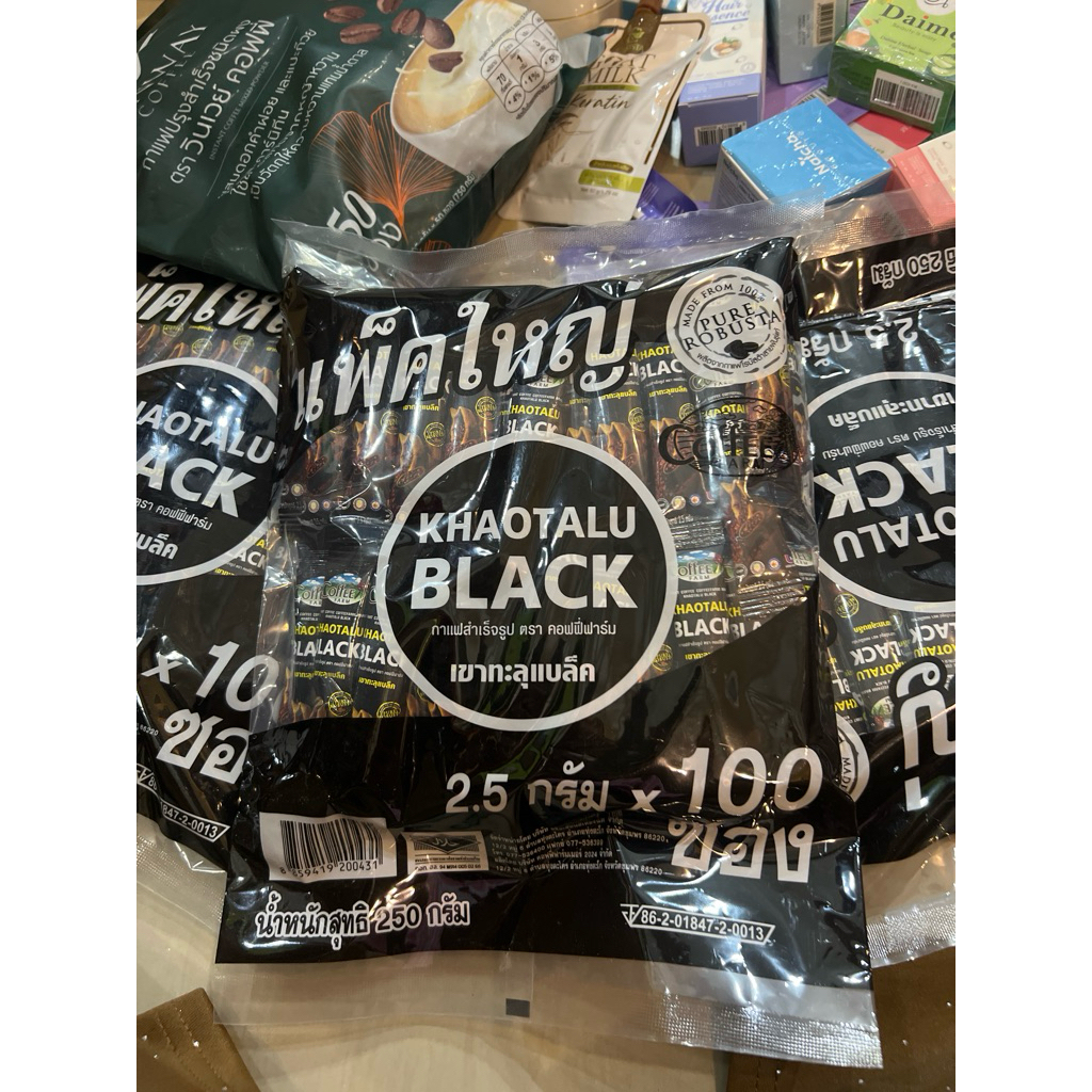 กาแฟดำเขาทะลุ แบล็ค ตรา คอฟฟี่ฟาร์ม กาแฟจากชุมพร ขนาด 2.5 กรัม 1 ห่อใหญ่ 100 ซอง