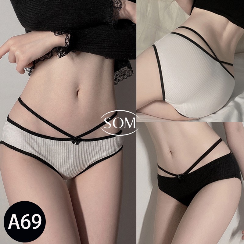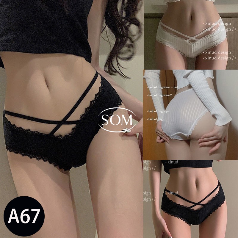 SOM Underwear กางเกงในผู้หญิง สไตล์ญี่แุ่น กางเกงเอวตำ่ ผ้านิ่ม ระบายกาศใส่สบาย มีสายคาดเอว A66