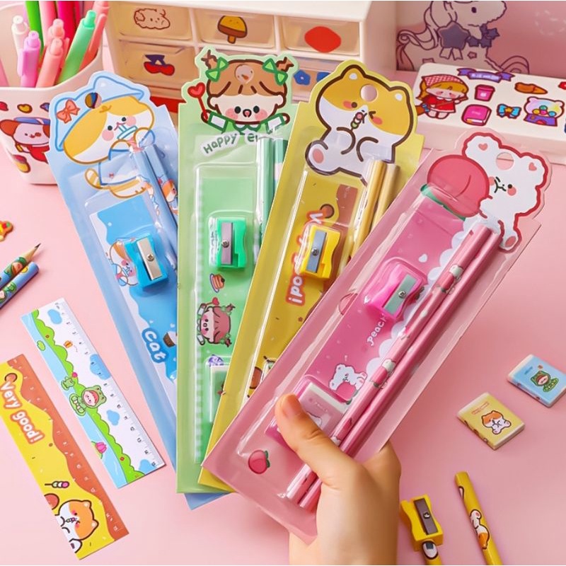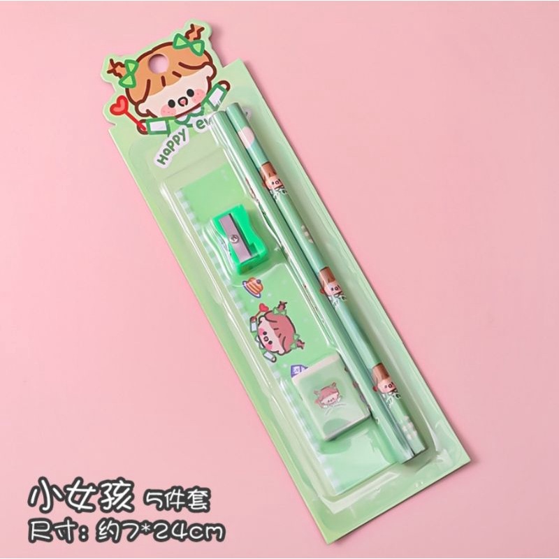 เซ็ทดินสอ มี ดินสอ ยางลบ ไม้บรรทัด กบเหลา ราคาต่อ 1 เซ็ท
