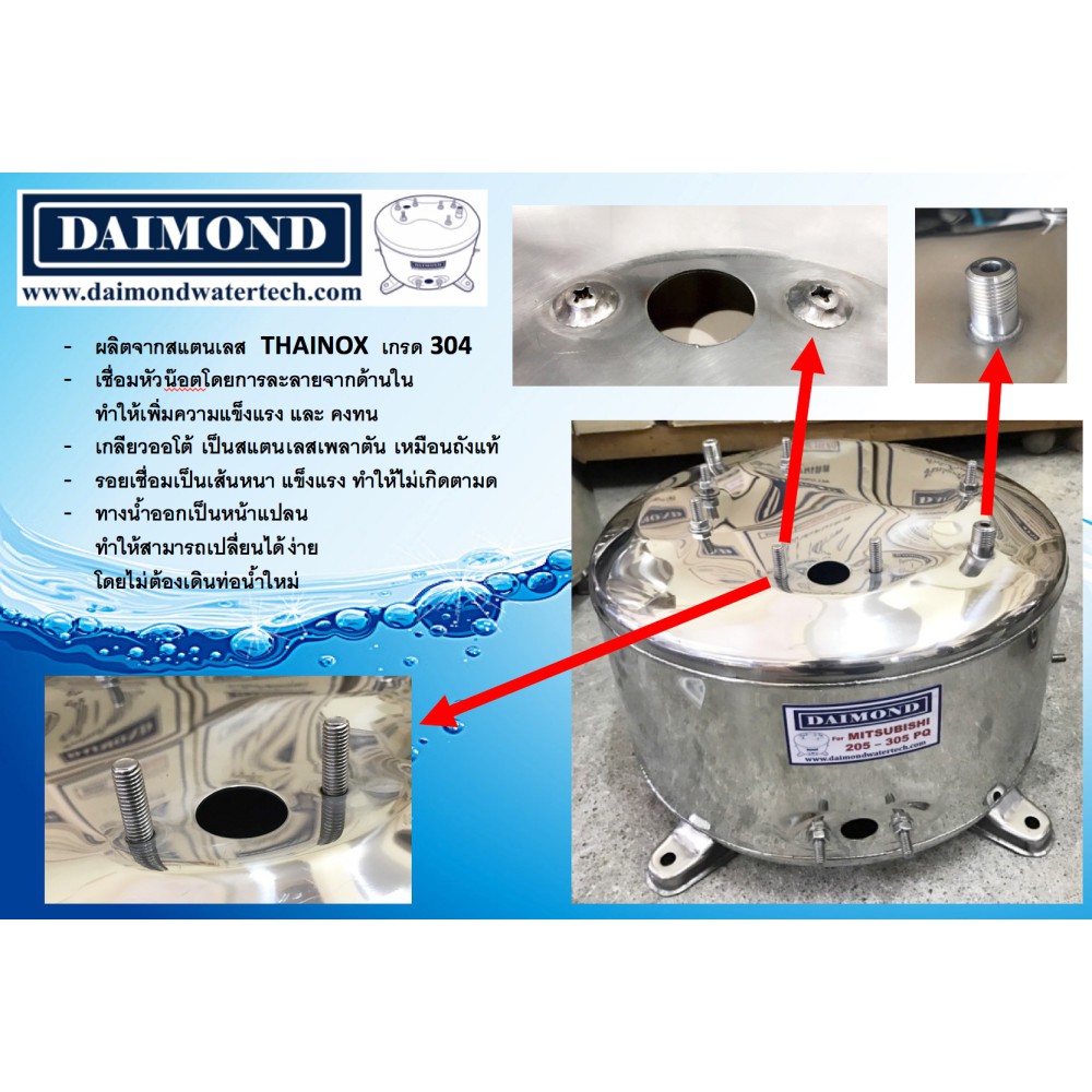 ถังปั้มน้ำสแตนเลส DAIMOND สำหรับ ปั๊มน้ำมิตซูบิชิ MITSUBISHI รุ่น 105-305 P, Q,S,Q2,Q3,QS,Q5 ,R รุ่นหนาสเตนเลส เกรด 304