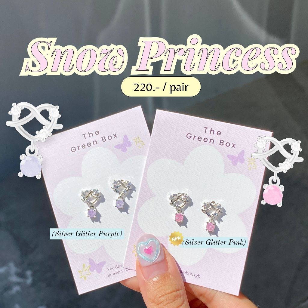ต่างหู Aurora Princess ต่างหู Pretzel ทรงหัวใจพร้อมเพชรห้อย - The Green Box