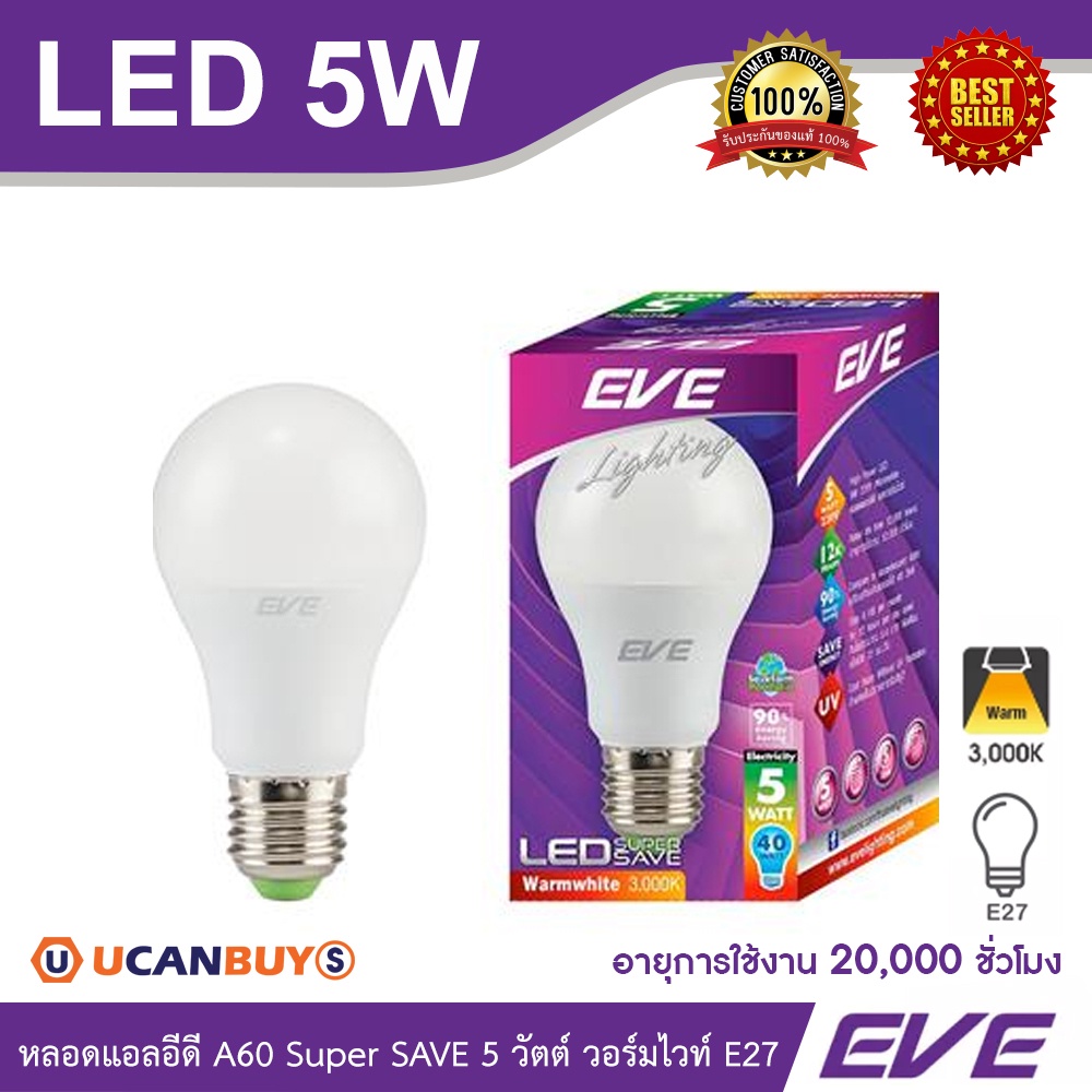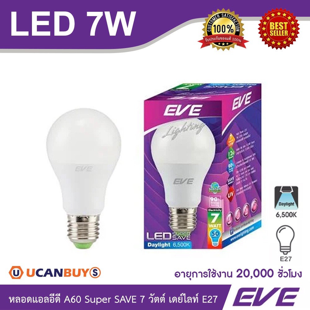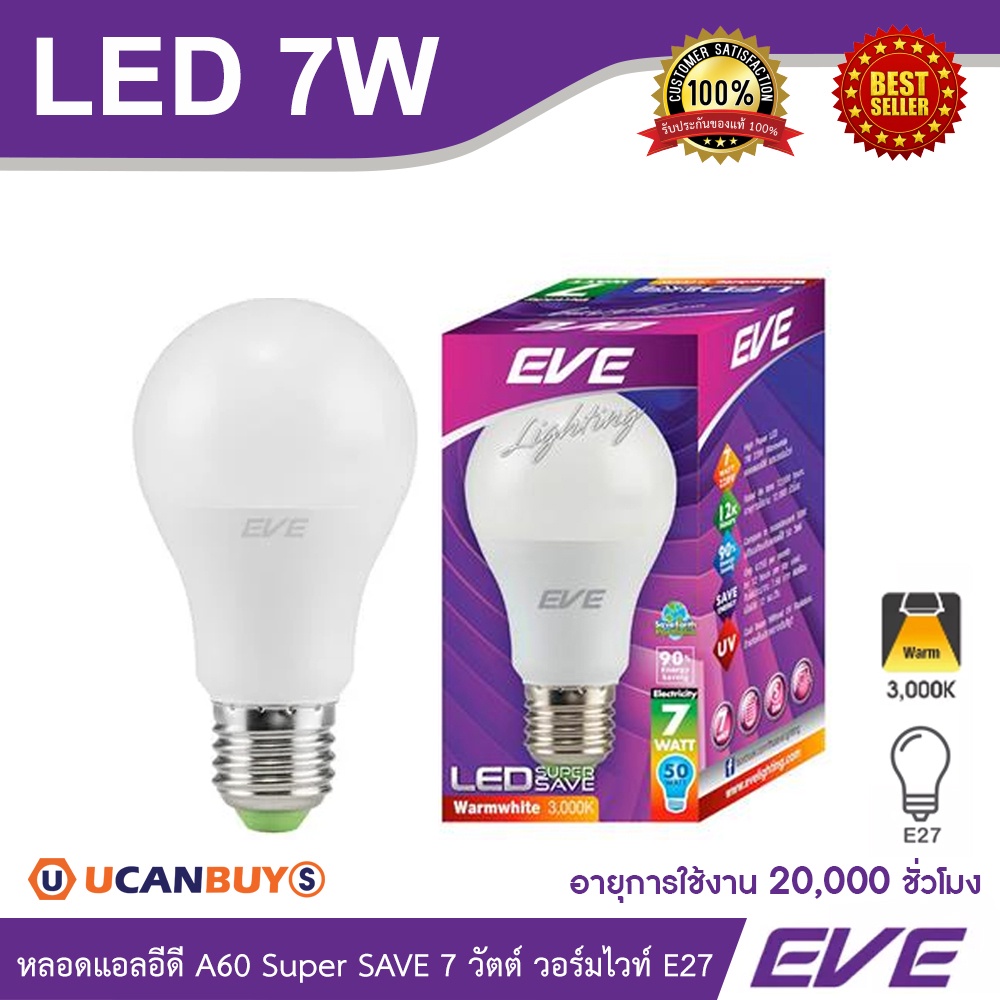 EVE หลอดแอลอีดีLED A60 Super SAVE 5วัตต์และ7วัตต์ เดย์ไลท์-วอร์มไวท์ ขั้วE27