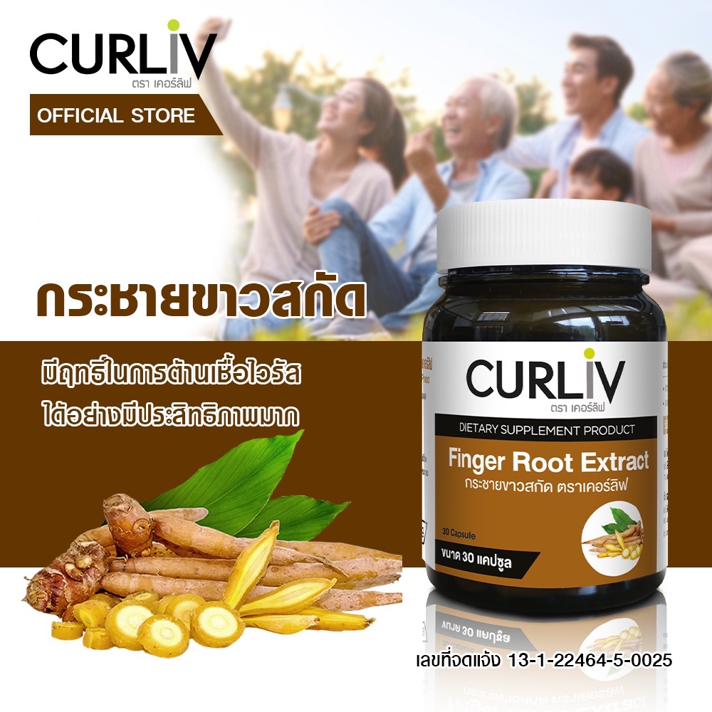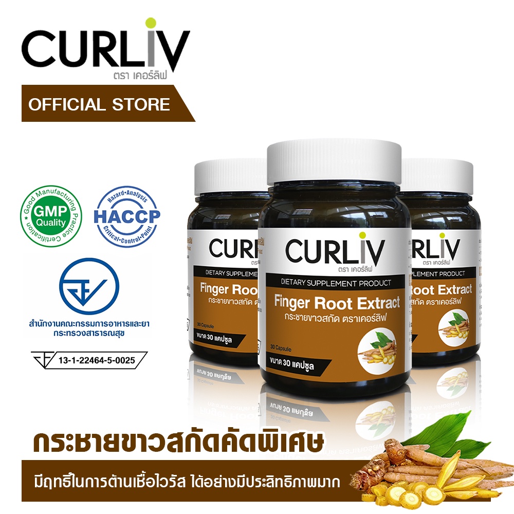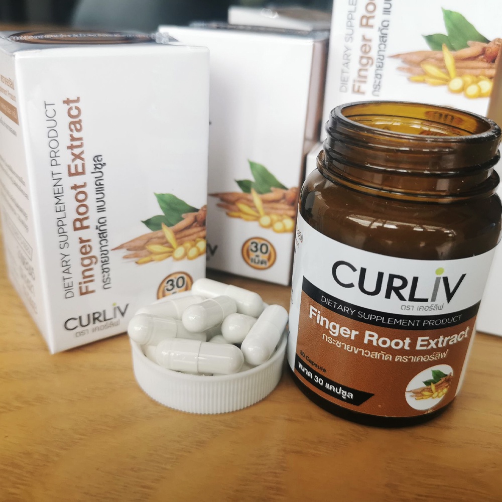 กระชายขาวสกัด เกรดพรีเมี่ยม ชุด 3 กระปุก แบรนด์เคอร์ลิฟ CURLIV FINGER ROOT EXTRACT เส ริมภูมิคุ้มกันต้านเชื้อโรค