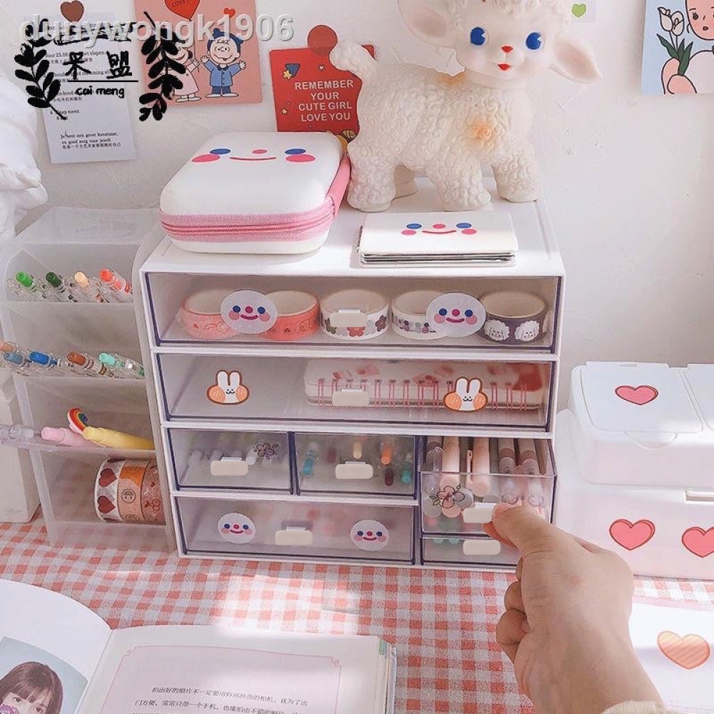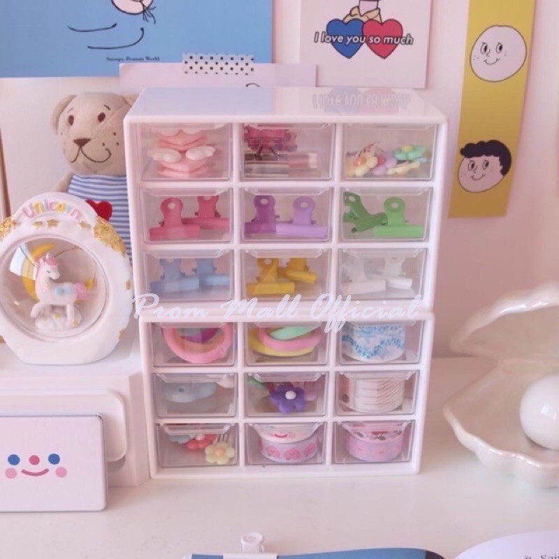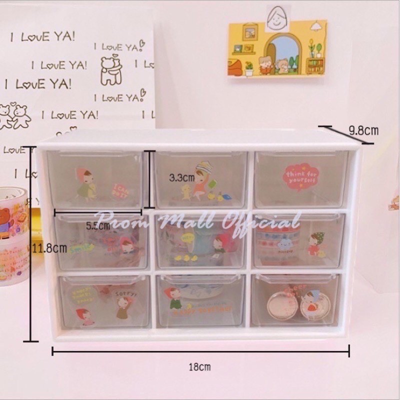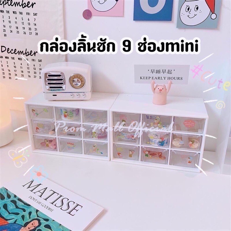 【แถมสติ๊กเกอร์】 กล่องลิ้นชักเก็บของพลาสติก กล่องใส่ของใช้จุกจิก กล่องใส่เครื่องเขียน กล่องลิ้นชัก 9 ช่อง Mini