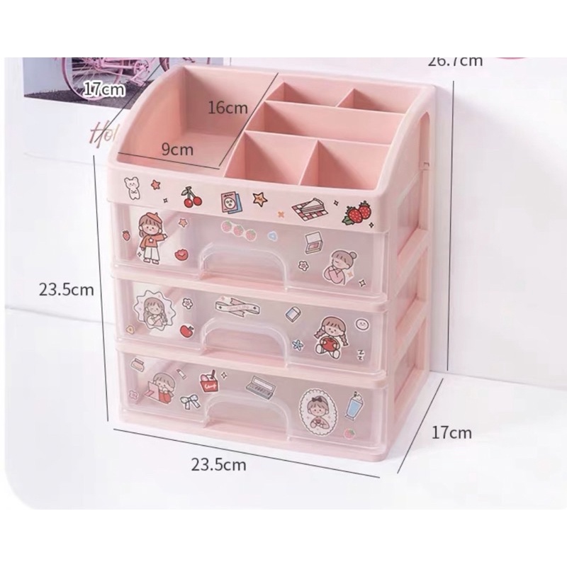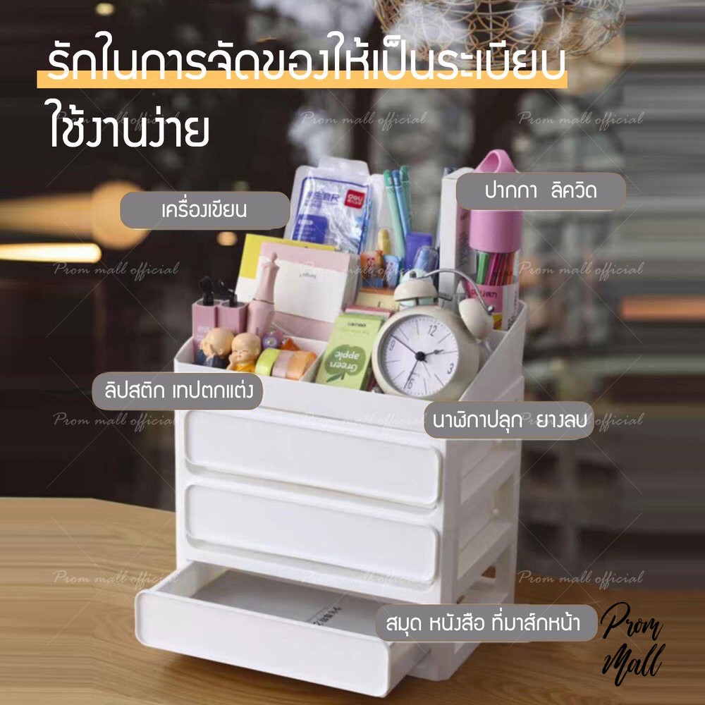 แถมสติ๊กเกอร์ชั้นวางเครื่องสำอาง ชั้นจัดระเบียบ ลิ้นชักเก็บของได้เยอะ styleมินิมอล