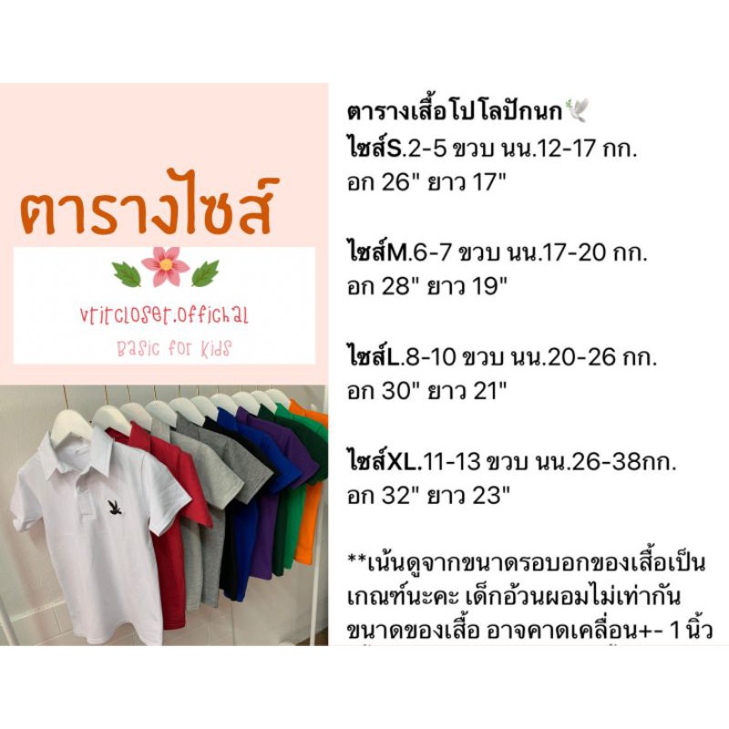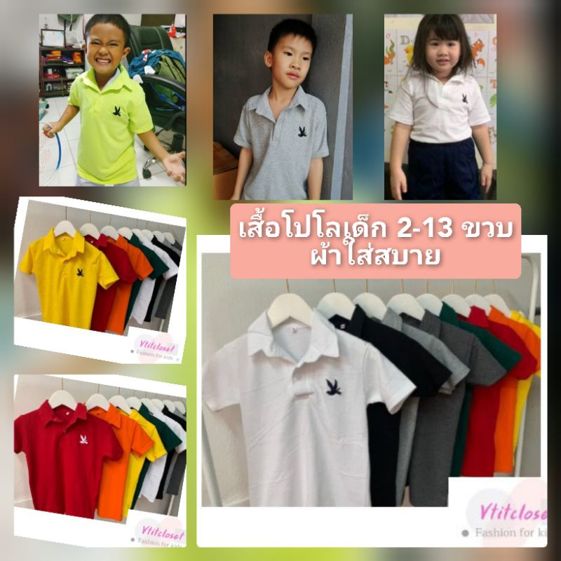 เสื้อโปโลเด็ก สีพื้น Polo smart เด็ก 2-13 ขวบ (เลือกสี/เลือกไซส์) ใส่ได้ทั้ง ดช-ดญ. มีบริการเก็บเงินปลายทาง