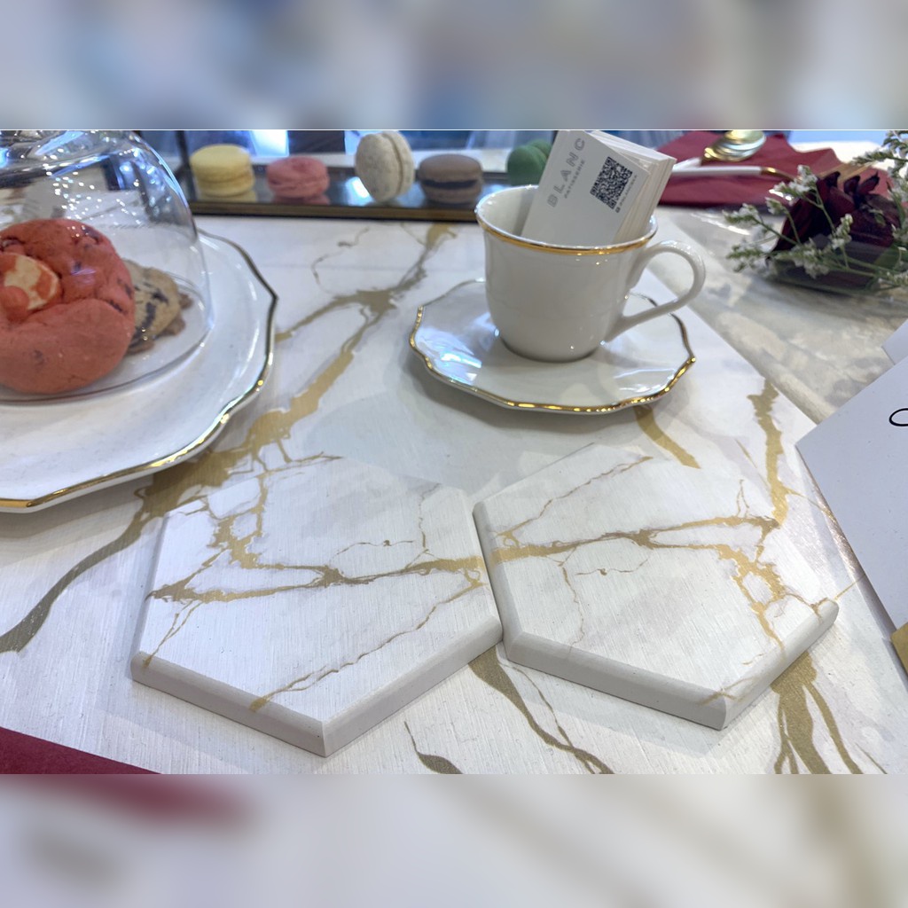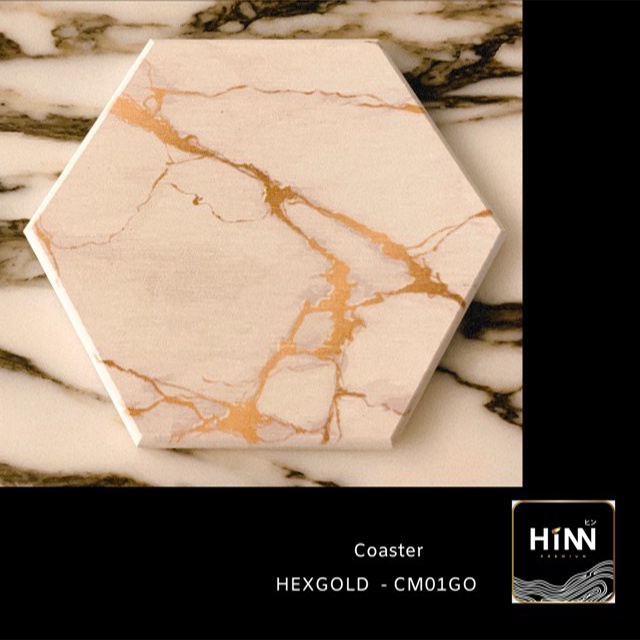 HiNN Premium ที่รองแก้ว แผ่นหินซับน้ำรุ่น HEXGOLD