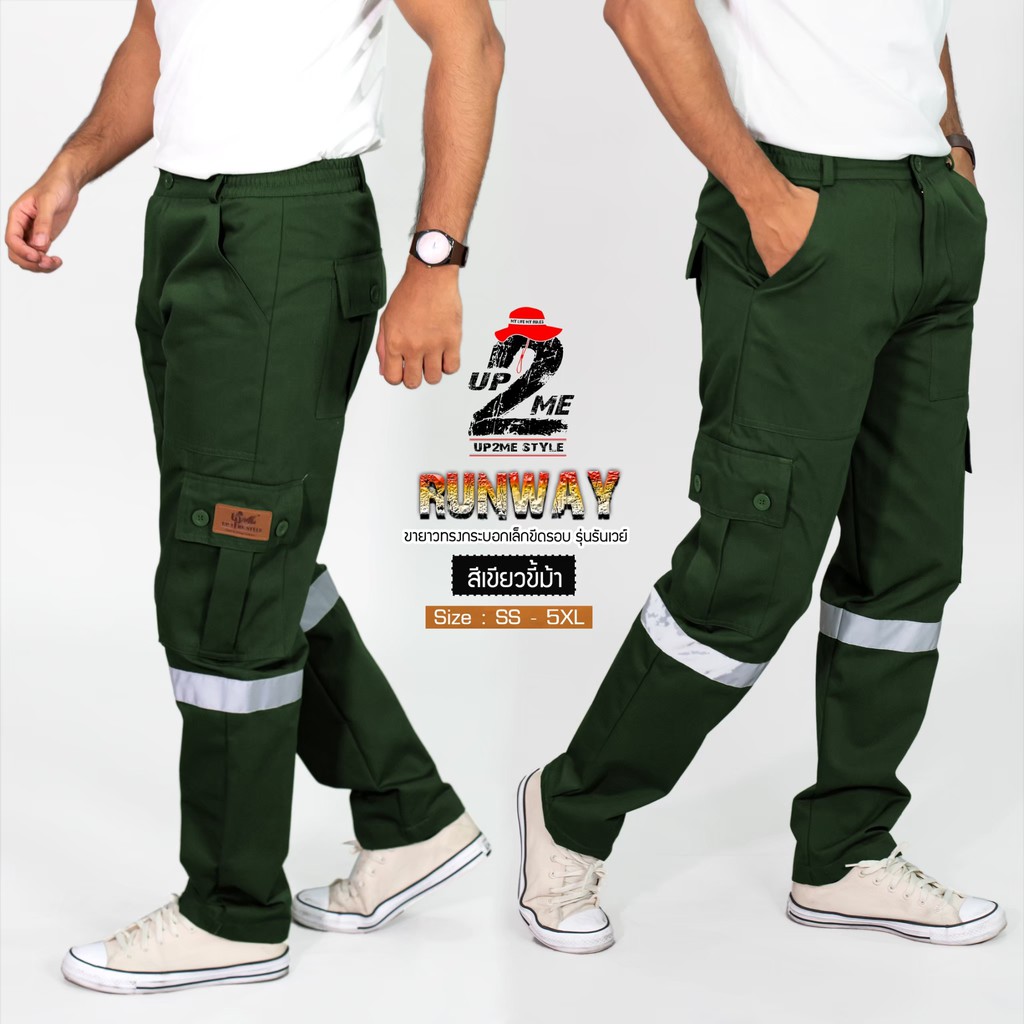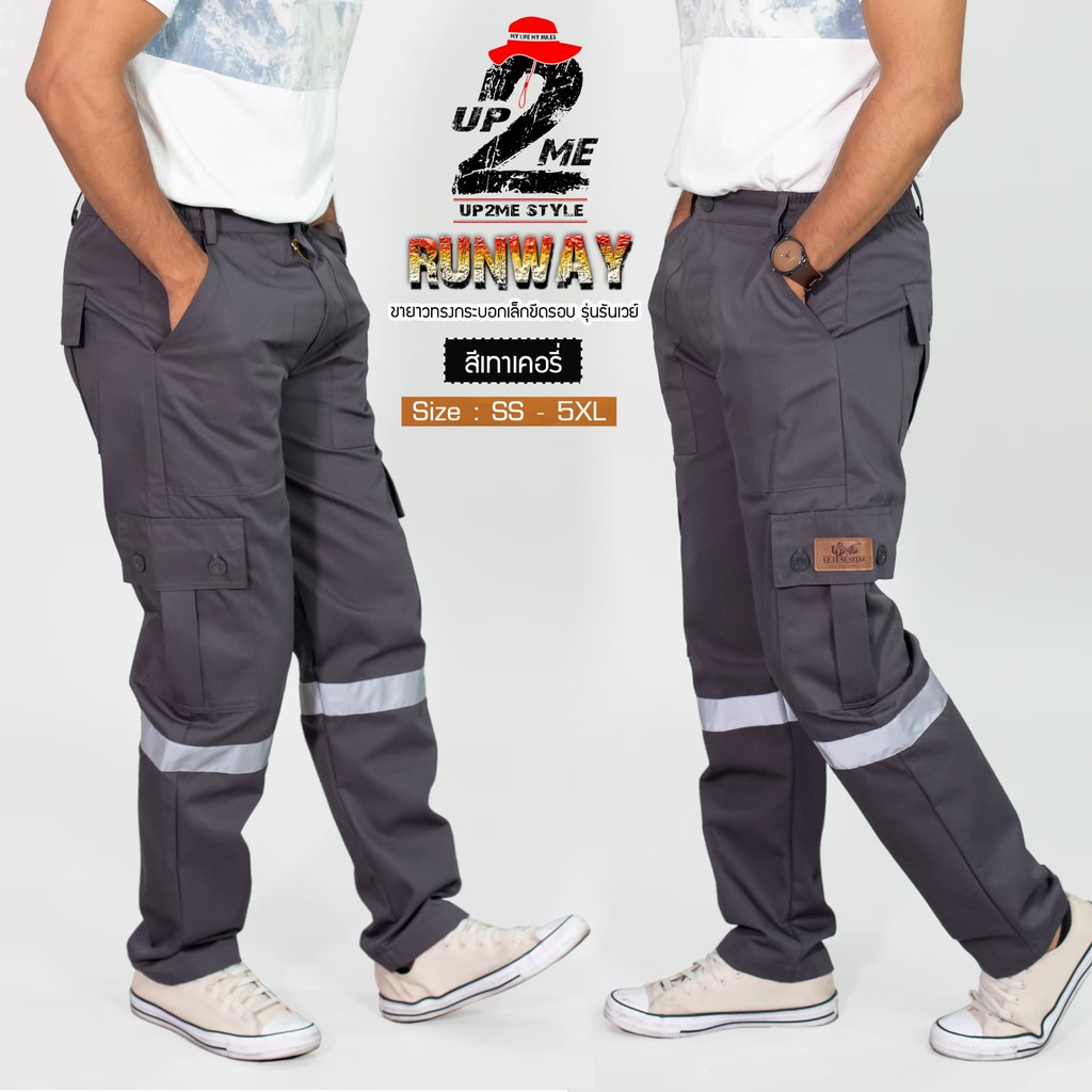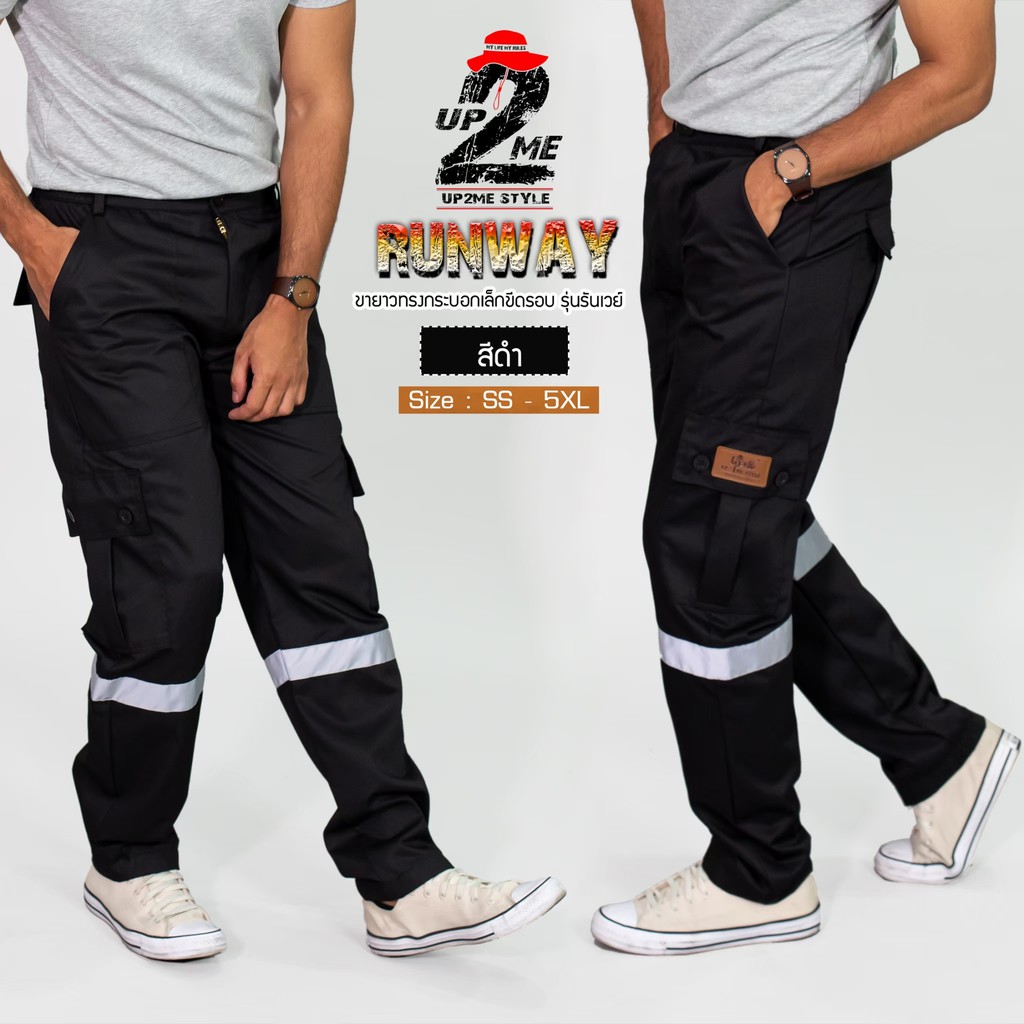UP2ME :กางเกงคาร์โก้ รุ่น Runway วินเทจ กางเกงช่าง ติดแถบสะท้อนแสง ขายาว WORKWEARTHAILAND