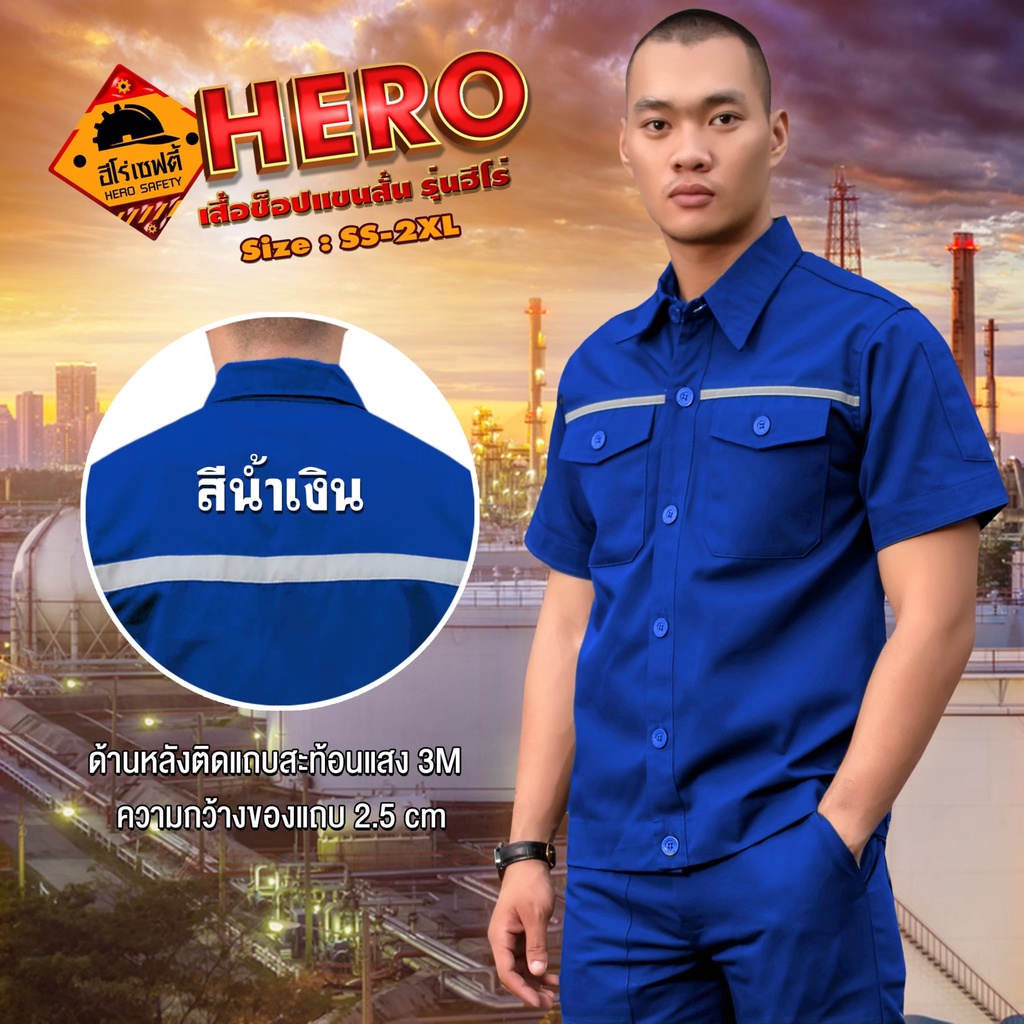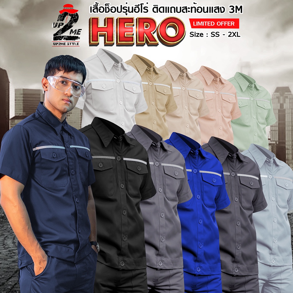 UP2ME :เสื้อช็อปแขนสั้น รุ่น Hero ช็อปช่าง กระเป๋าหน้า 2 ข้าง ติดแถบสะท้อนแสง WORKWEARTHAILAND