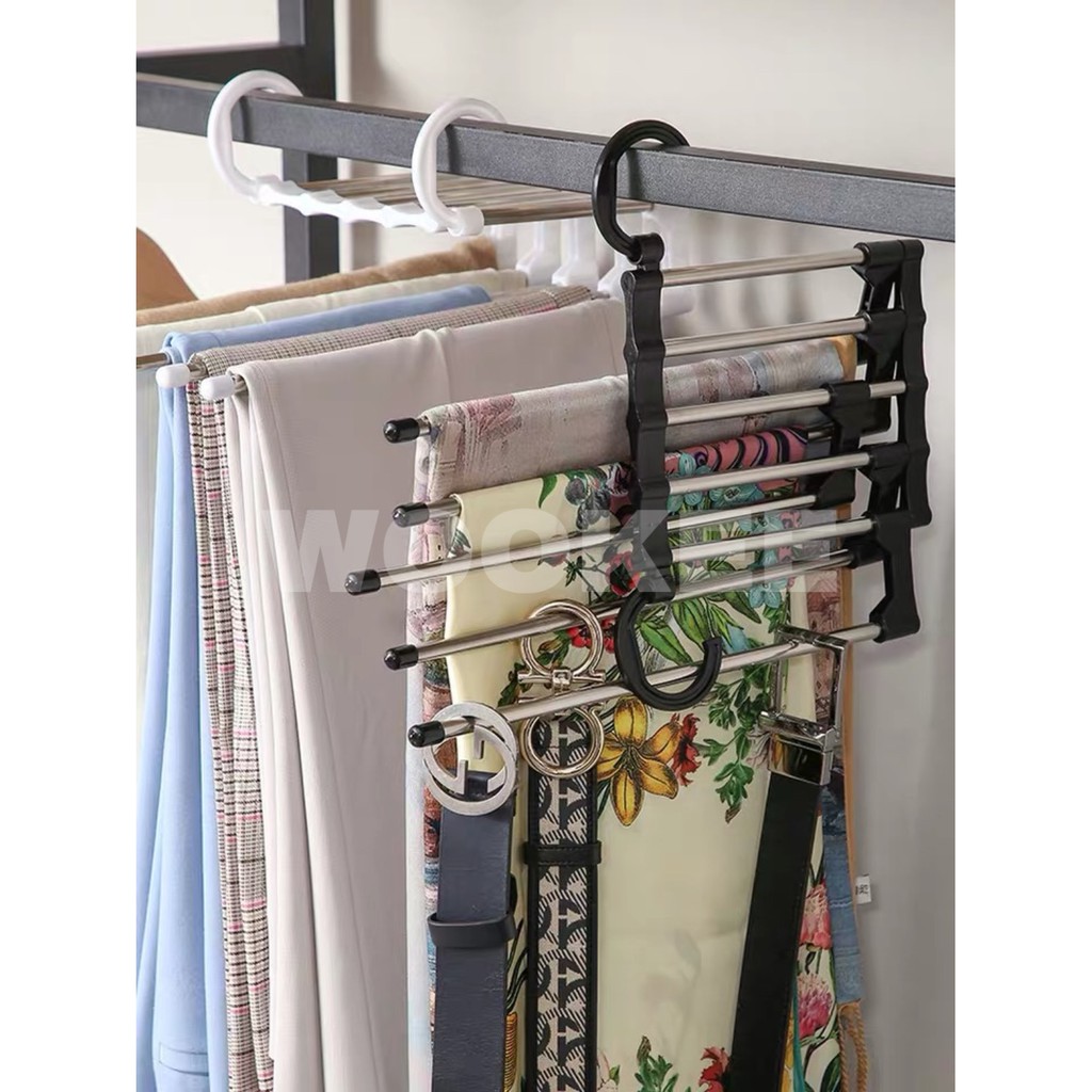 WOOKEE ไม้แขวนกางเกง 5 ใน 1 ประหยัดพื้นที่สามารถแขวน,ไม้แขวนกางเกง สแตนเลส