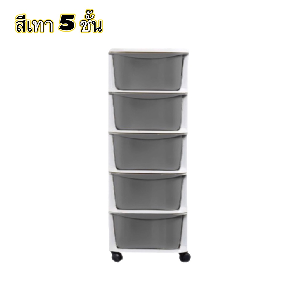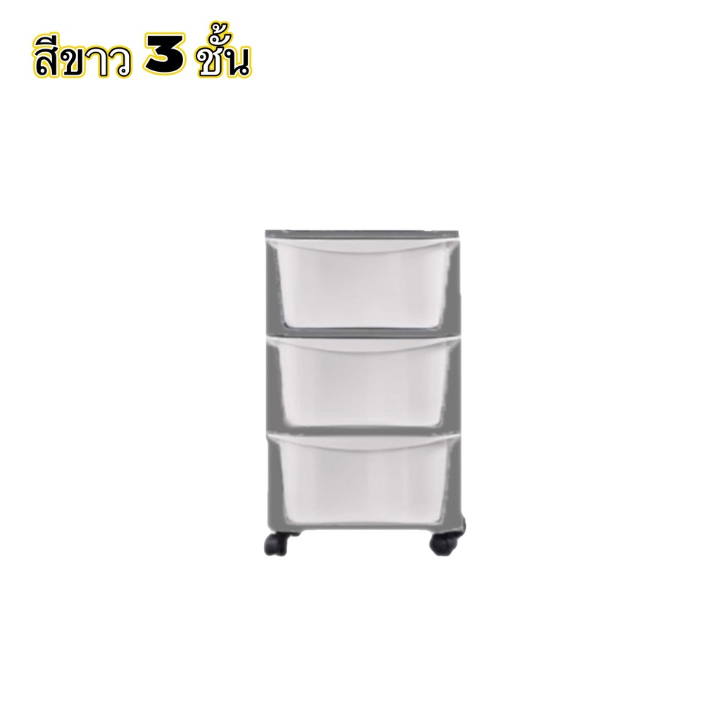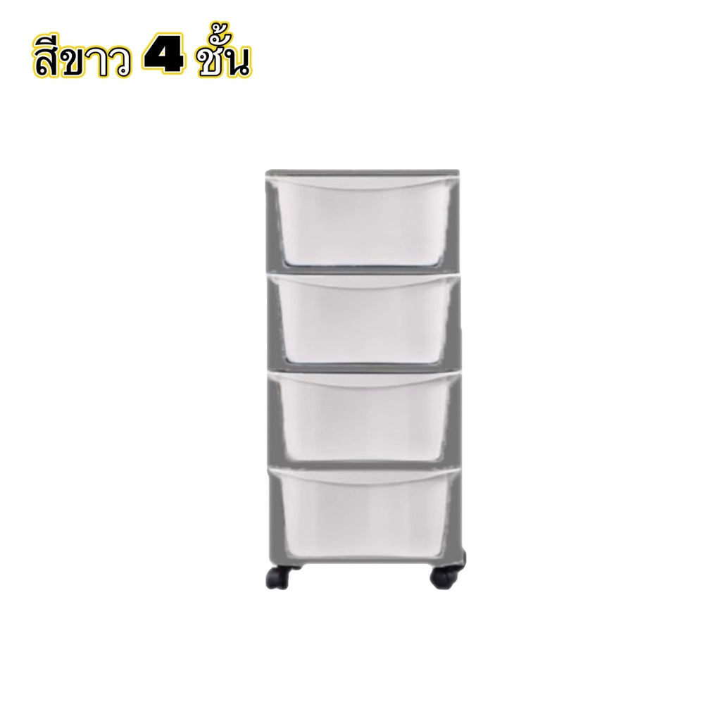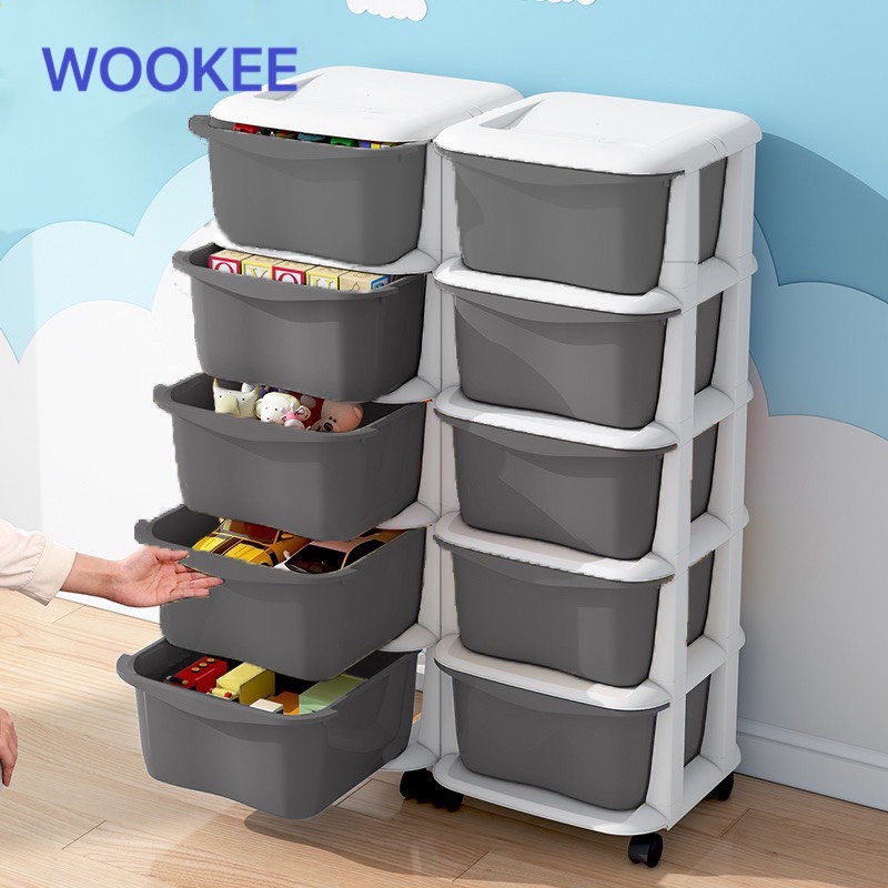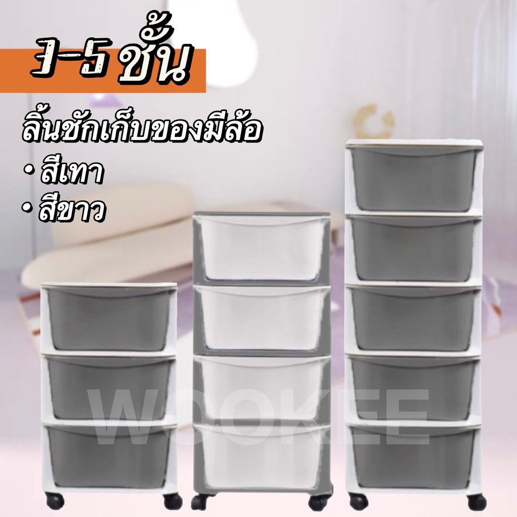 WOOKEE ลิ้นชัก ลิ้นชักเก็บของมีล้อ ลิ้นชักใส่เสื้อผ้า อุปกรณ์จัดเก็บ ตู้เก็บเอกสาร ลิ้นชักพลาสติก ชั้นวาง สีเทา สีขาว