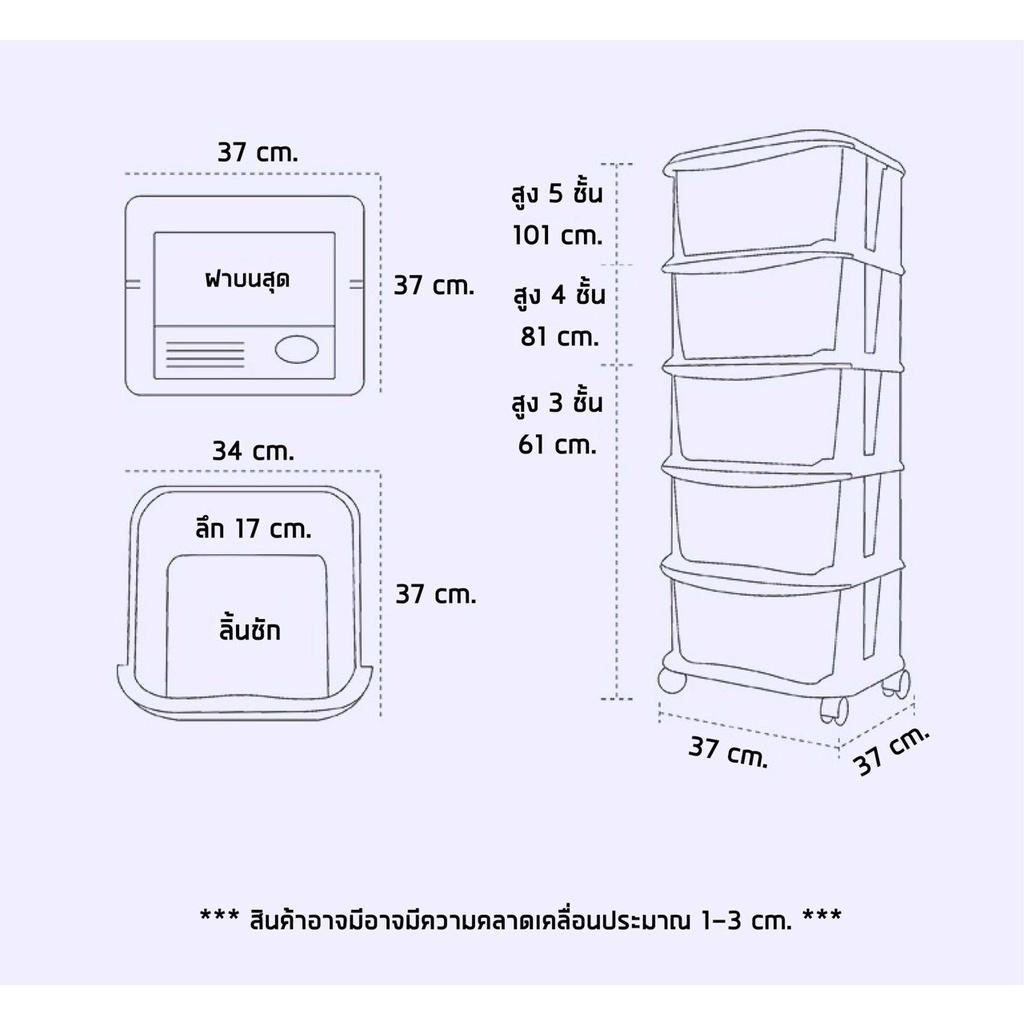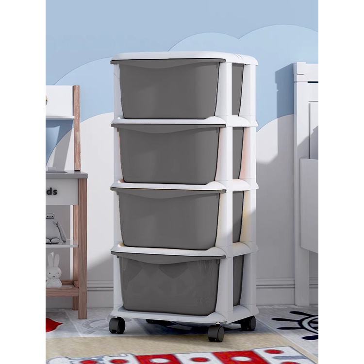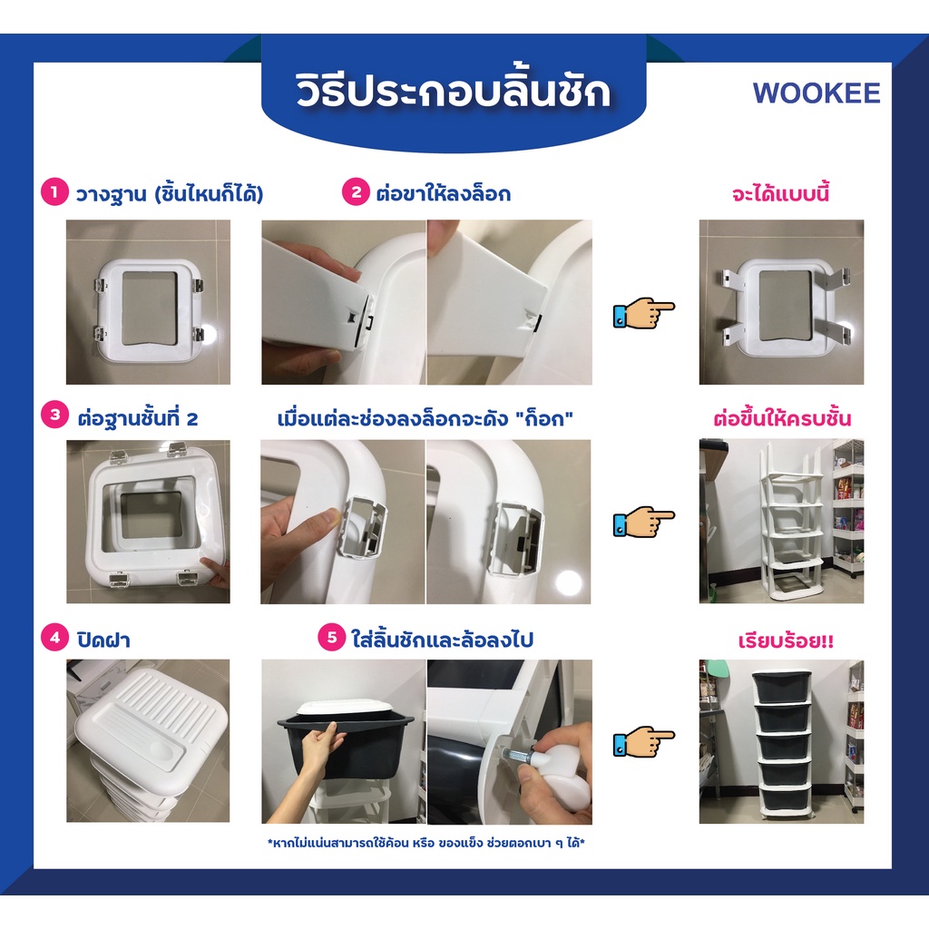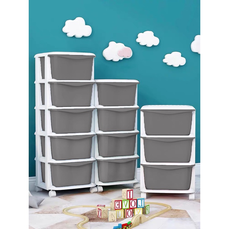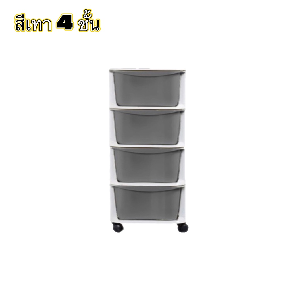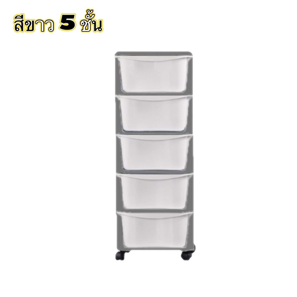 WOOKEE ลิ้นชัก ลิ้นชักเก็บของมีล้อ ลิ้นชักใส่เสื้อผ้า อุปกรณ์จัดเก็บ ตู้เก็บเอกสาร ลิ้นชักพลาสติก ชั้นวาง สีเทา สีขาว