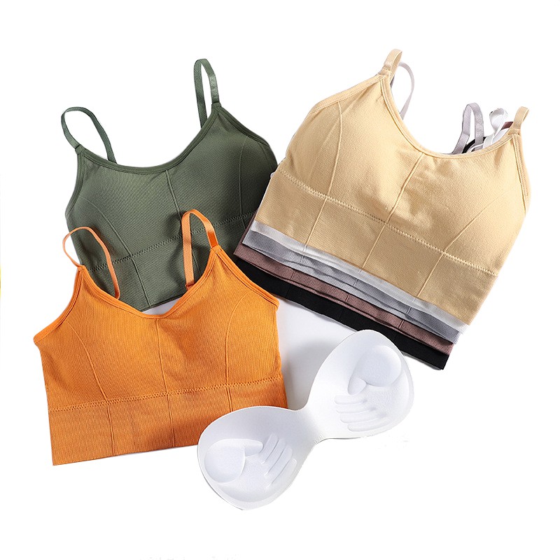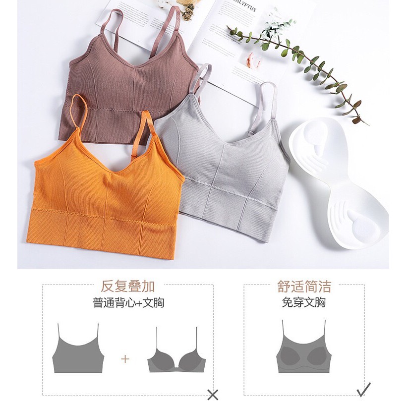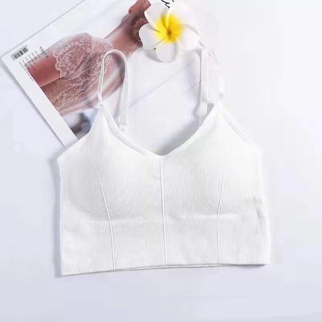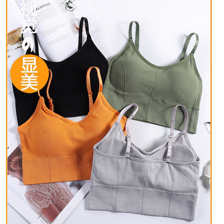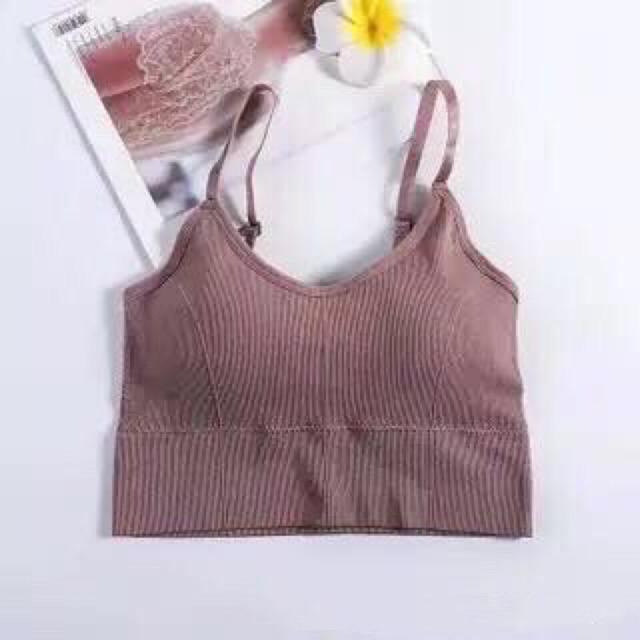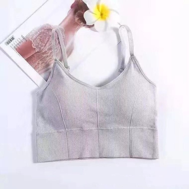 เสื้อชั้นในสายเดี่ยวผ้าร่อง แบบสวม มี8สี มีฟองน้ำ สายเดี่ยว บราผ้านิ่ม บราไร้ขอบ