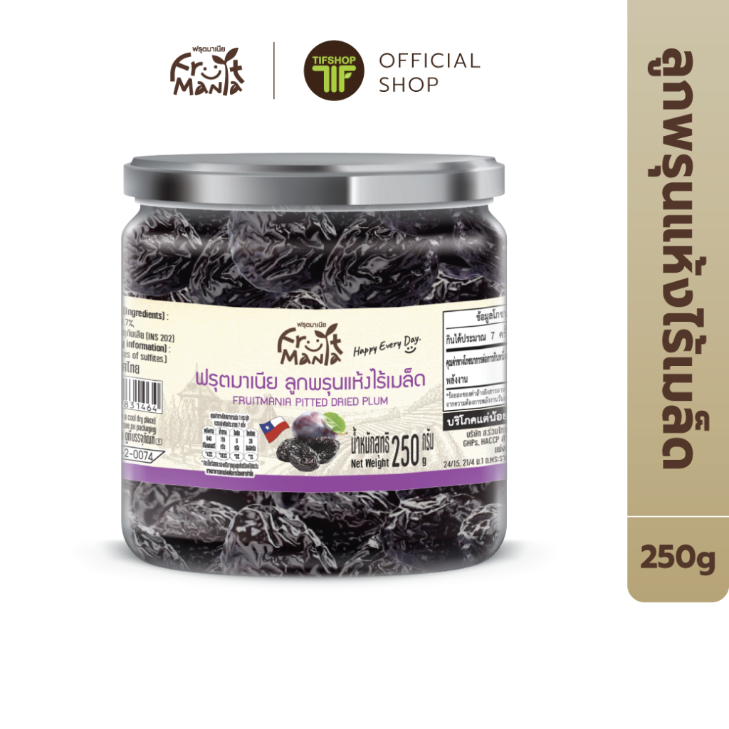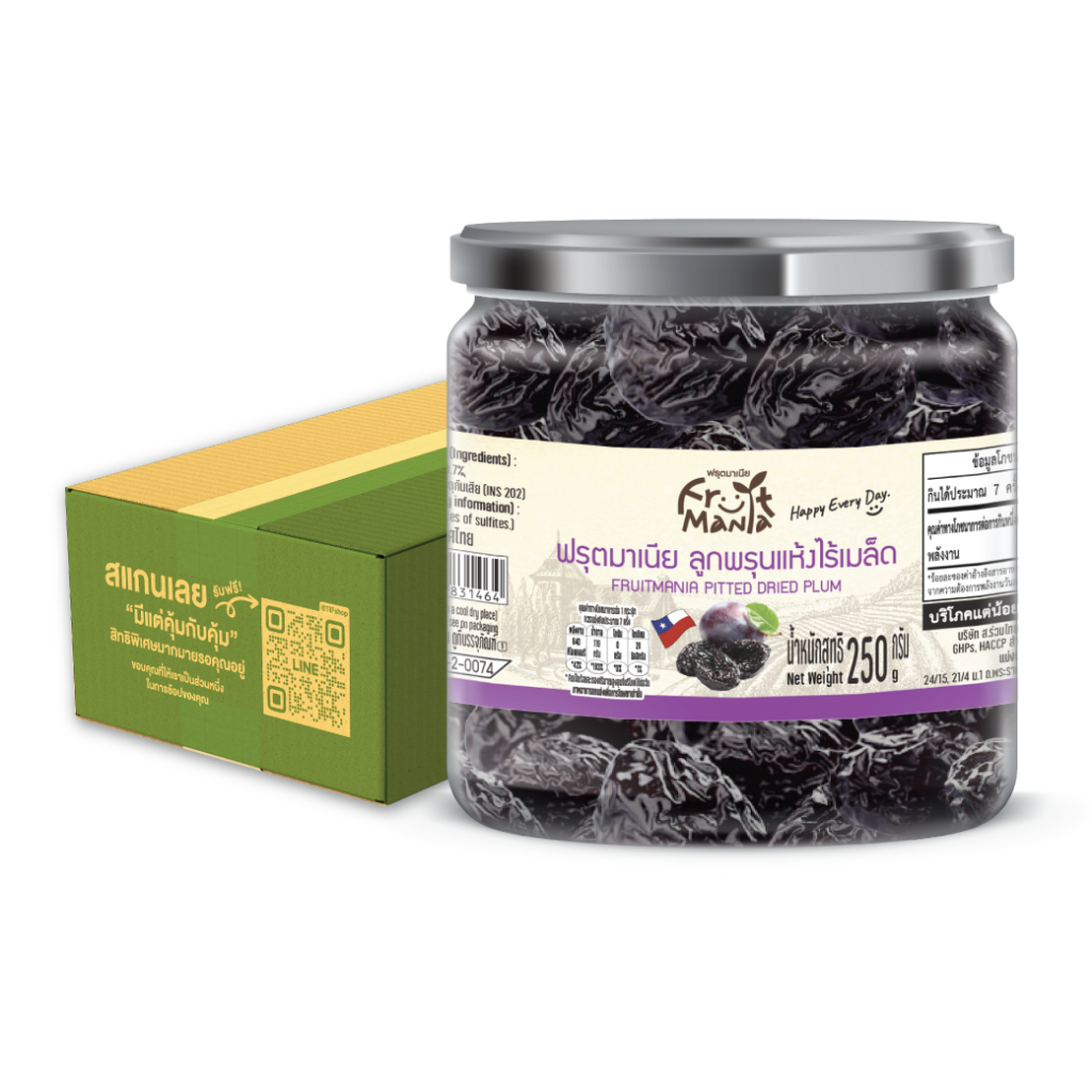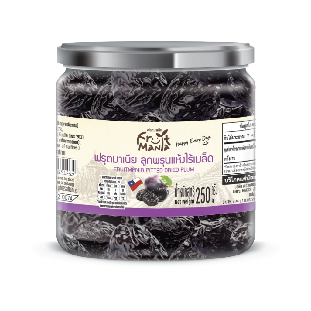 FruitMania ฟรุตมาเนีย ลูกพรุนแห้งไร้เมล็ด 250 กรัม Pitted Prunes (กระปุก)