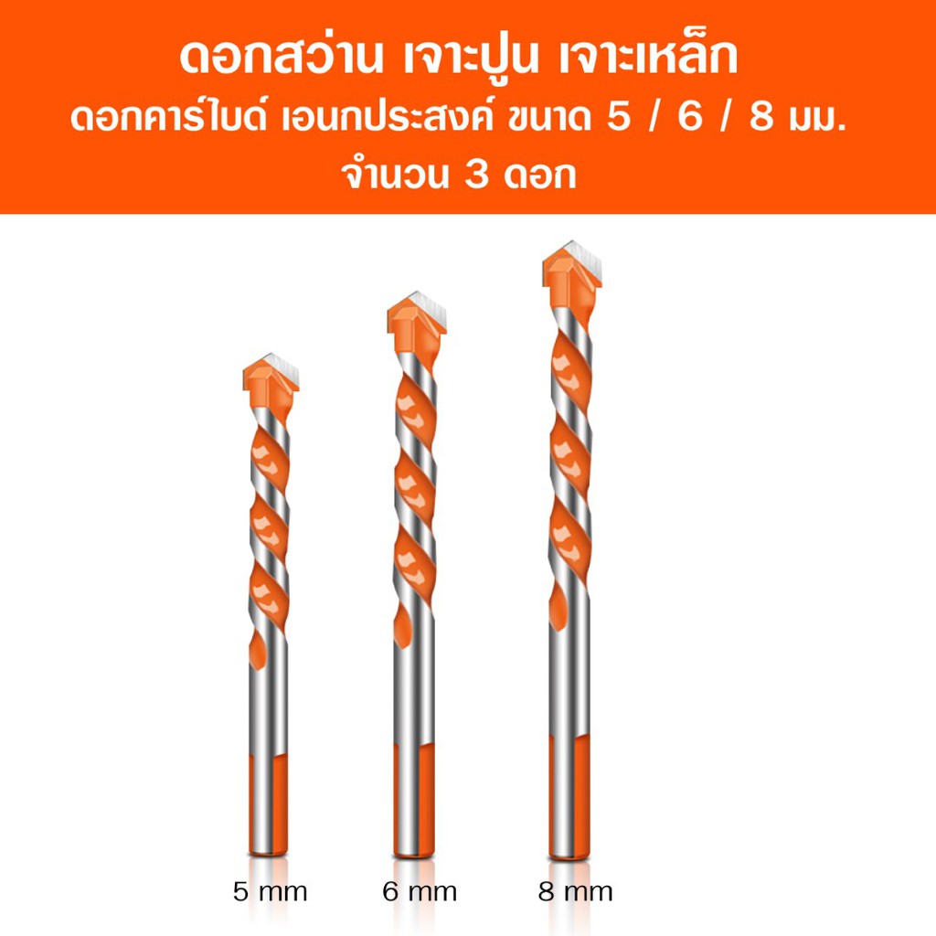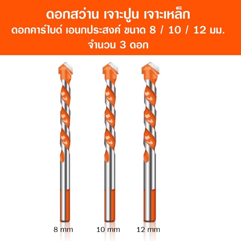 ดอกสว่าน เจาะปูน เจาะเหล็ก ดอกคาร์ไบด์ อเนกประสงค์ ขนาด 3,4,5,6,8,10,12 มม. MULTI-PURPOSE DRILL BIT 3,4,5,6,8,10,12 mm.