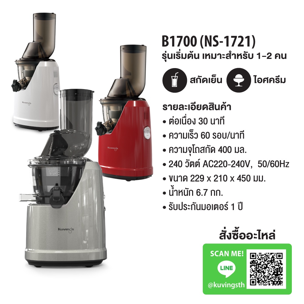 Kuvings เครื่องสกัดเย็นคั้นน้ำผลไม้ รุ่น B1700(NS-1721)