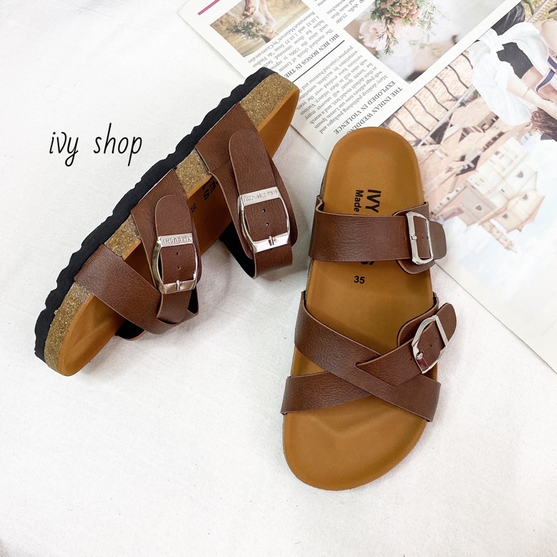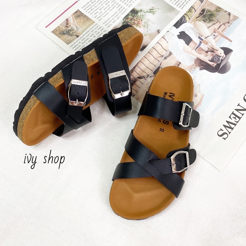 พร้อมส่ง⚡️ รองเท้าแตะ IVY SHOES รองเท้าไบเก้น พื้นนุ่ม แบบสวม สายเข็มขัด 3 สายคาด