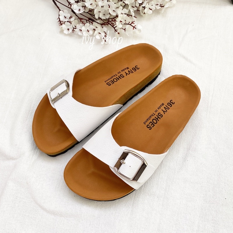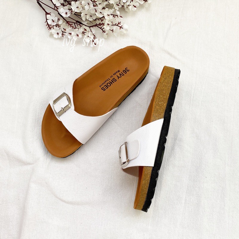 พร้อมส่ง⚡️รองเท้าแตะ IVY SHOES สไตล์วินเทจ พื้นนุ่ม หน้าเข็มขัด 1 ตอน สีขาว✨รองเท้าผู้หญิง