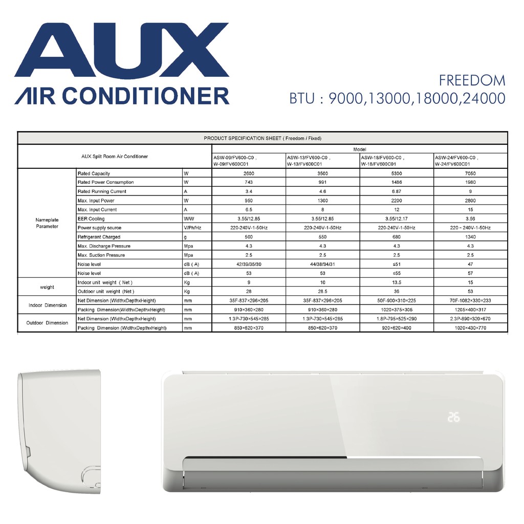 ใส่โค้ด[7KSVA8RU]รับcoins15%AUX เครื่องปรับอากาศติดผนัง ขนาด9000BTU รุ่น ASW-09/FV600-C0 (FREEDOM) R32 (ไม่รวมติดตั้ง)