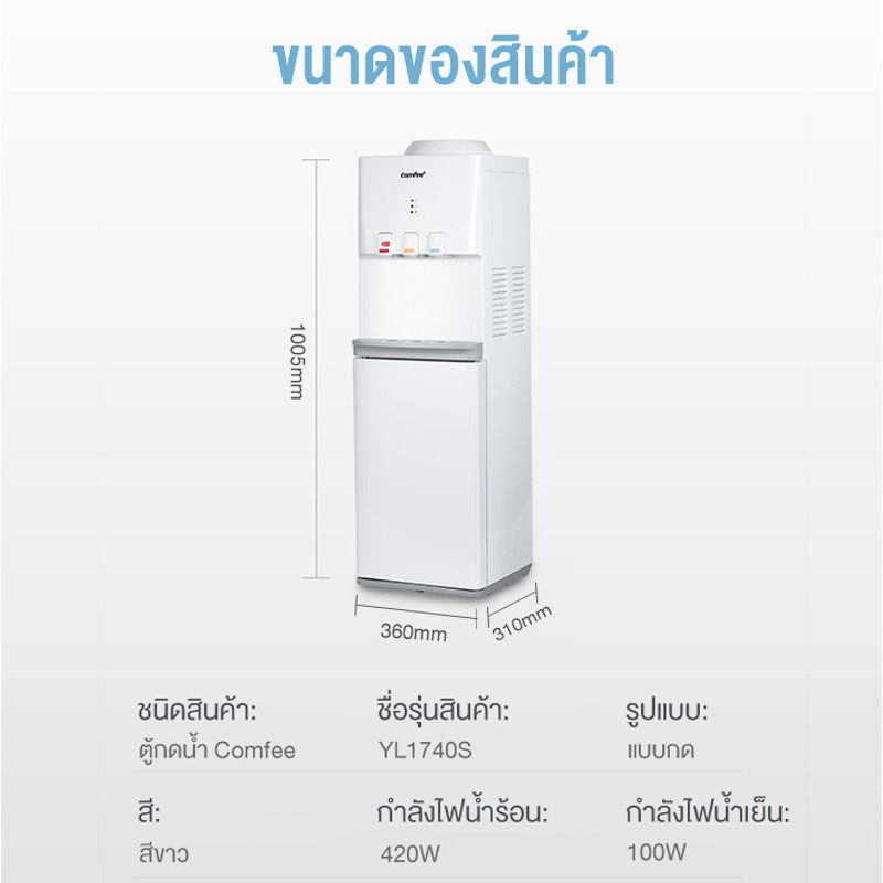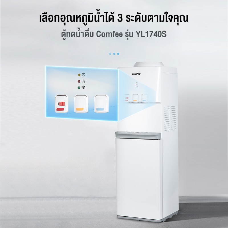 ใส่โค้ด[7KSVA8RU]รับcoins15%Comfee Water Dispenser ตู้ทำน้ำร้อน-เย็น-ปกติ 3 ก๊อกน้ำ บรรจุถังน้ำด้านบน ตู้แช่ด้านล่าง 20 ลิตร รุ่น YL1740S-B
