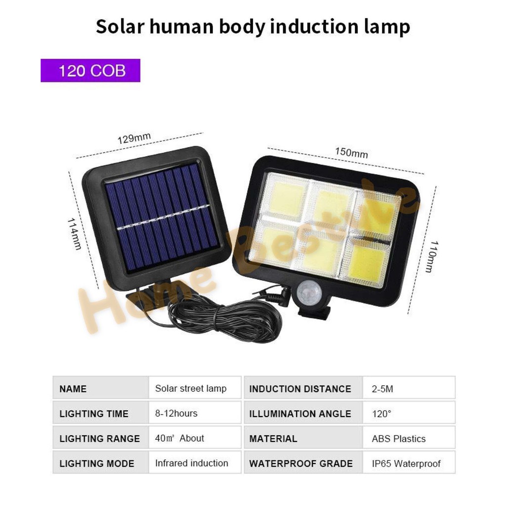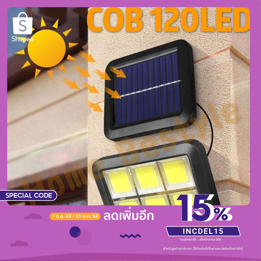ไฟโซล่าเซลล์ ปรับได้ 3 โหมด แผงแบตเตอรี่โซล่าเซลล์ COB 100 LED และ COB 120 LED เซ็นเซอร์อัตโนมัติ โคมไฟ ไฟกลางแจ้ง