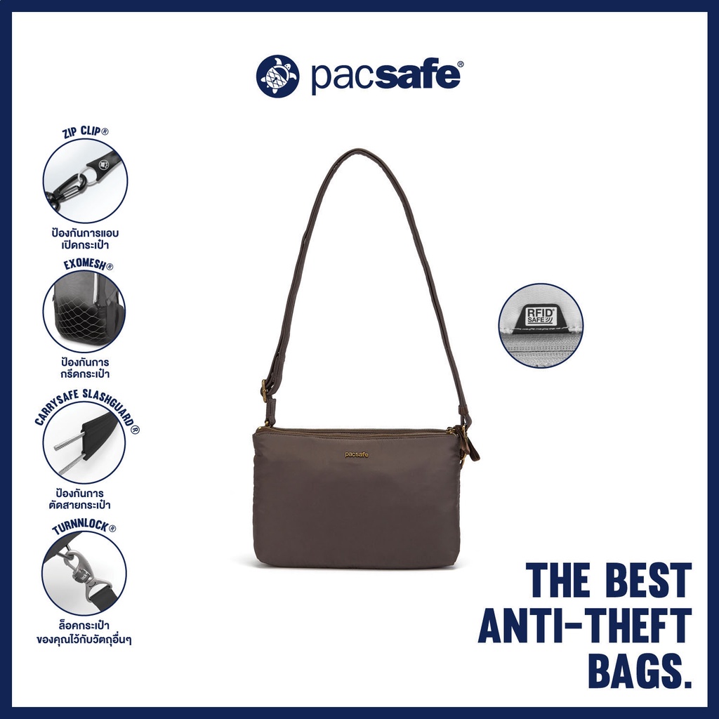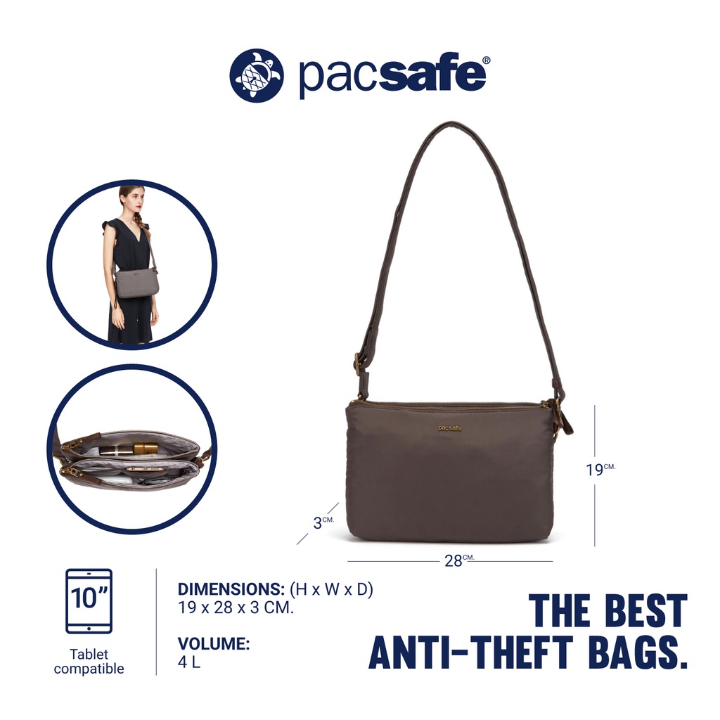 Pacsafe STYLESAFE DOUBLE ZIP CROSSBODY BAG ANTI-THEFT กระเป๋าสะพายข้าง กระเป๋ากันขโมย กระเป๋าคาดลำตัว