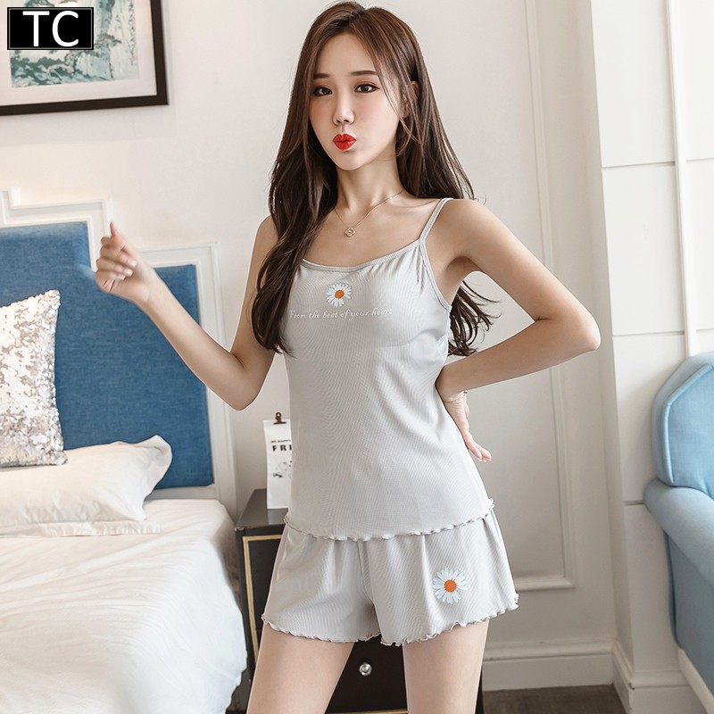 TC ดนอนสไตล์มินิมอลชุดนอนผู้หญิง ชุดนอนสายเดี่ยว+กางเกงขาสั้น รุ่น0999