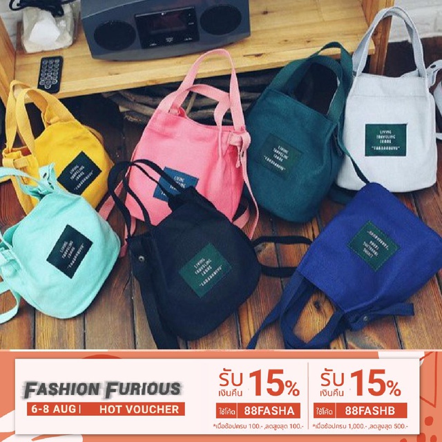 💖Korean KD9108 การออกแบบเกาหลี แคนวาส แฟชั่นกระเป๋าสะพายไหล่ (หลากสี)