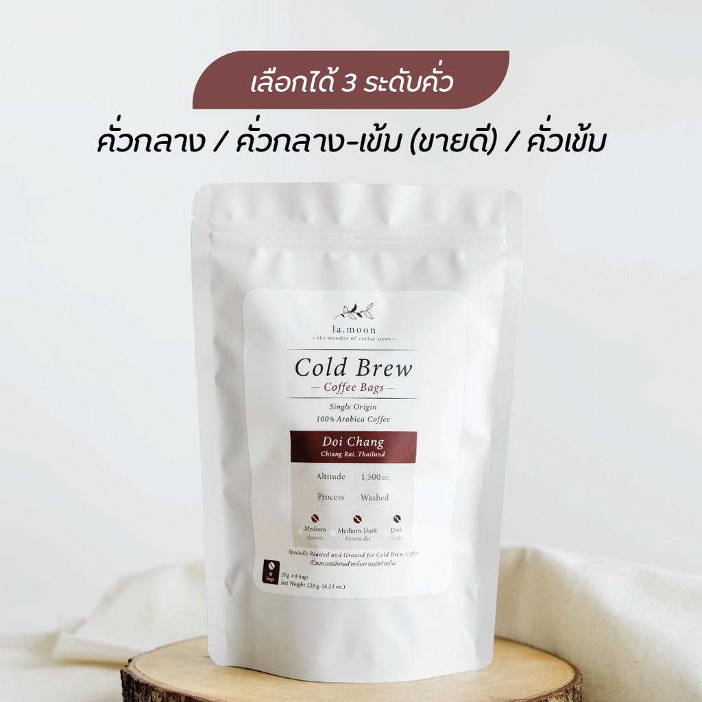 Lamoon Cold Brew Coffee Bags กาแฟดอยช้างชงเองที่บ้าน 12 เสิร์ฟ (กาแฟ 6 ถุง)
