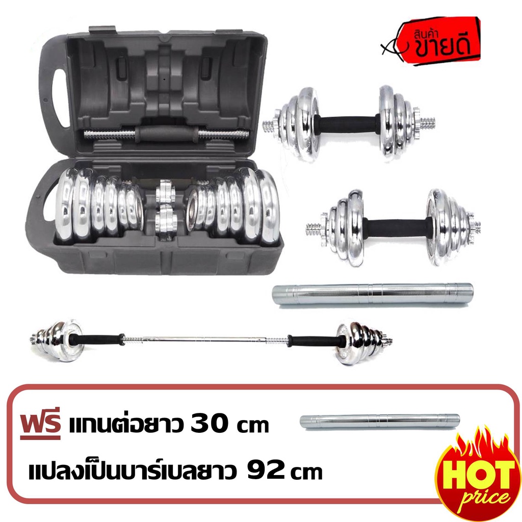 ดัมเบล 20 kg ด้ามจับหุ้มยางสีดำ + ฟรี แกนต่อยาว 30 cm เลือกจ่ายปลายทางได้