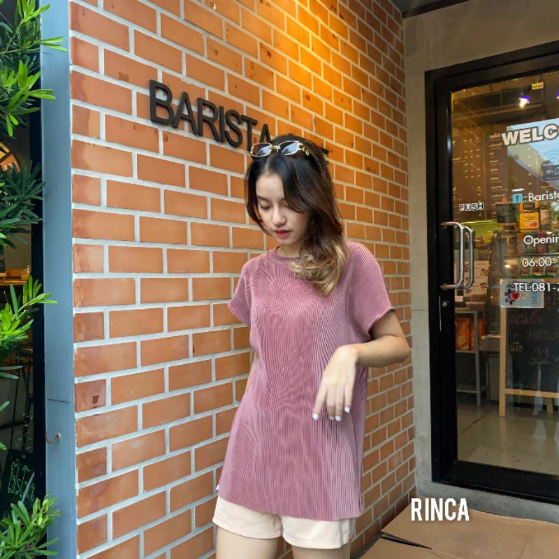 🍓5.5🍓<อก36-45">เสื้อพลีทแขนเต่อ byRinca แขนในตัว งานตัวใหญ่ พรางหุ่น