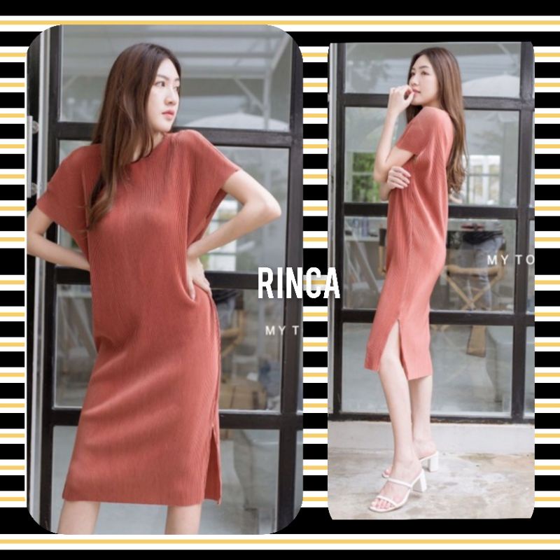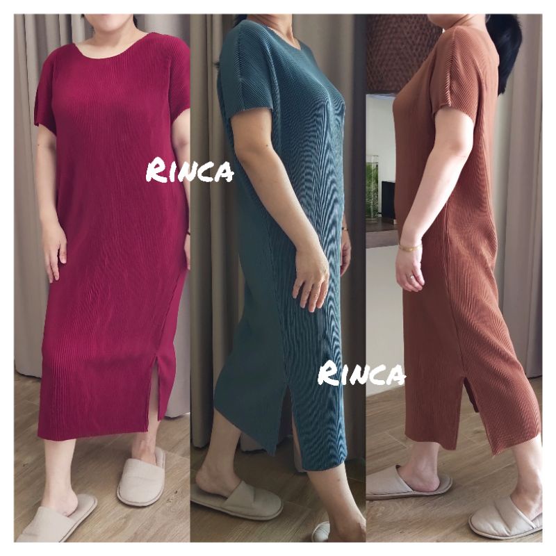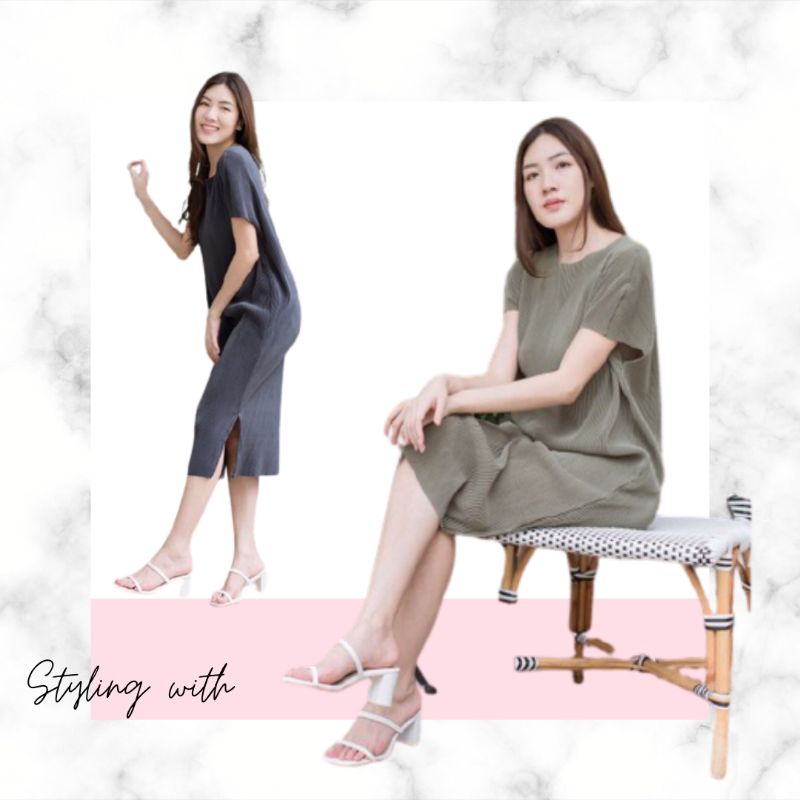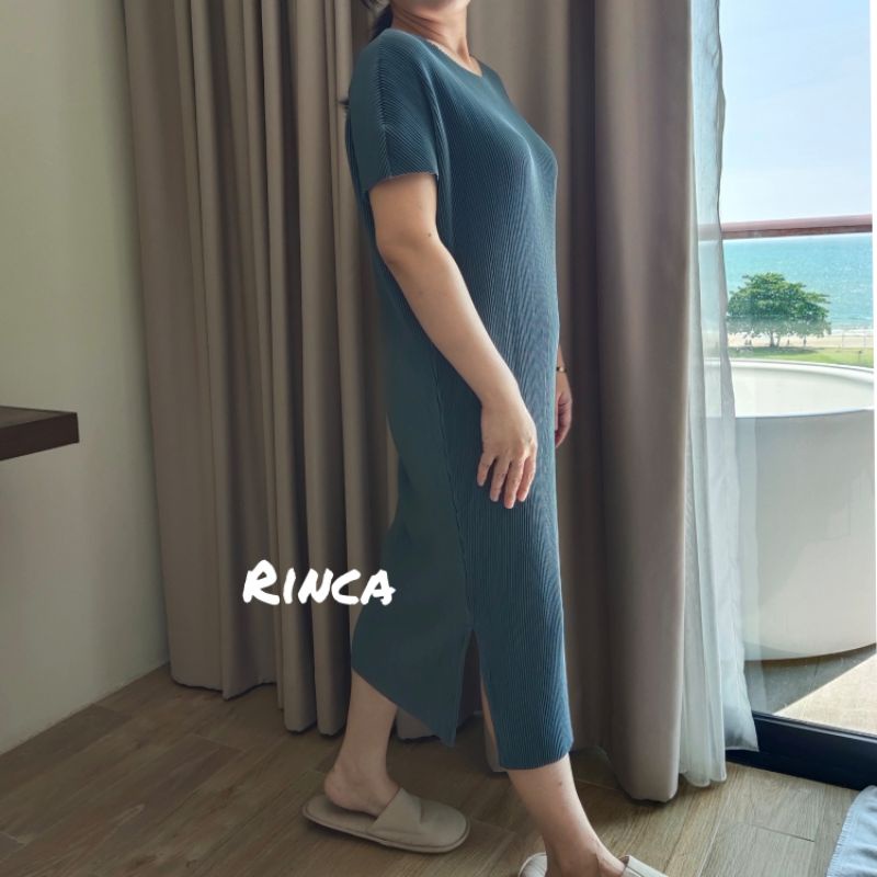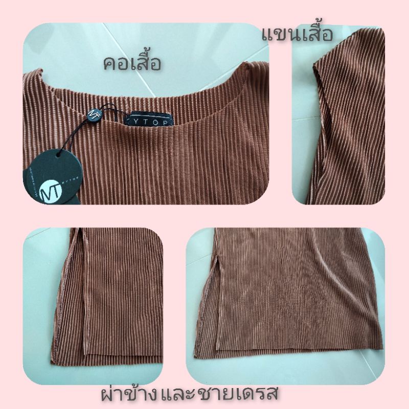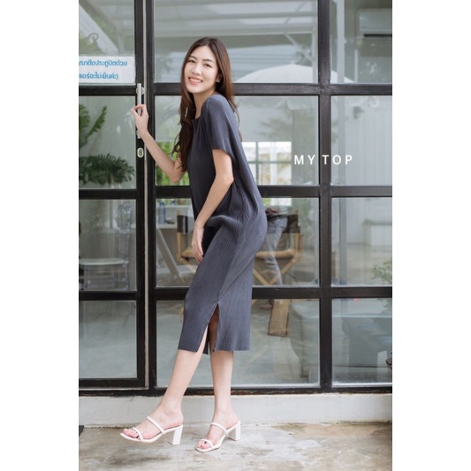 👑2.2🍀<อก40-50">เดรสพลีทคอปาด ผ่าข้าง ผ้าไม่บาง ไม่โปร่งแสง สวยมากมายยย
