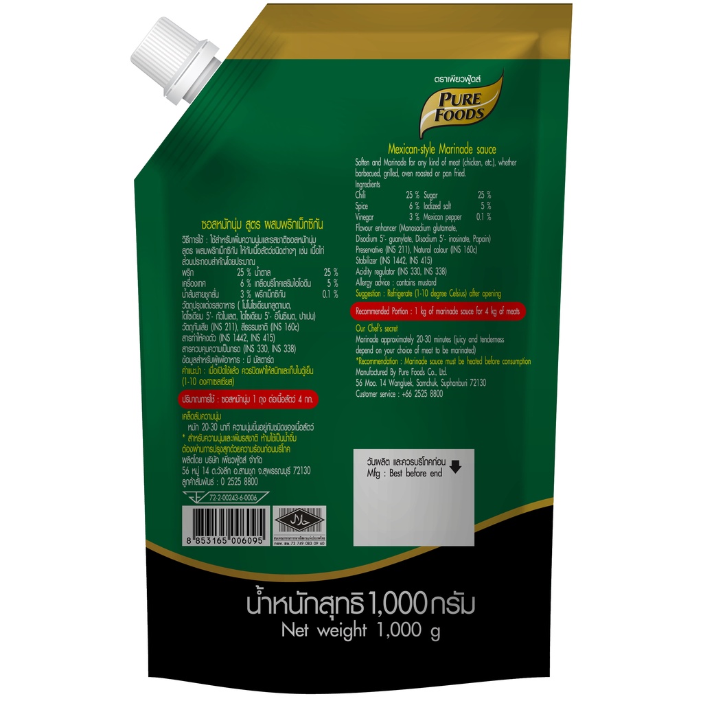 ซอสหมัก นุ่ม สูตรแม็กซิกัน 1000 กรัม เผ็ดสไตล์แม็กซิกัน มีฮาลาล ตราเพียวฟู้ดส์ Purefoods พร้อมส่ง