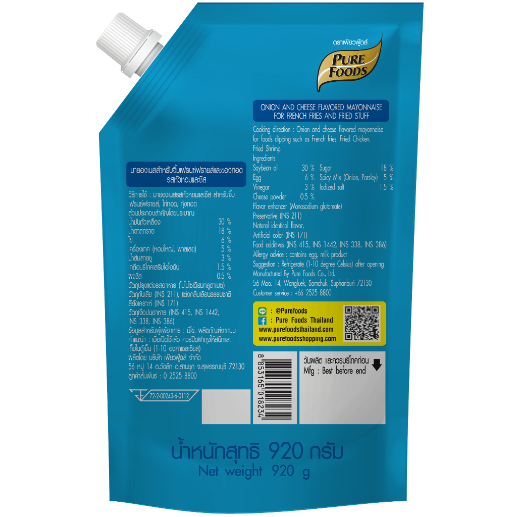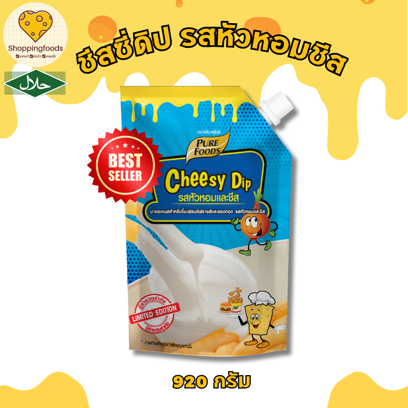 ส่งด่วน! ชีสดิป รสหัวหอมชีส ขนาด 920 กรัม ตรา เพียวฟู้ดส์ มีฮาลาล ชีสซอส เข้มข้น พรีเมียม