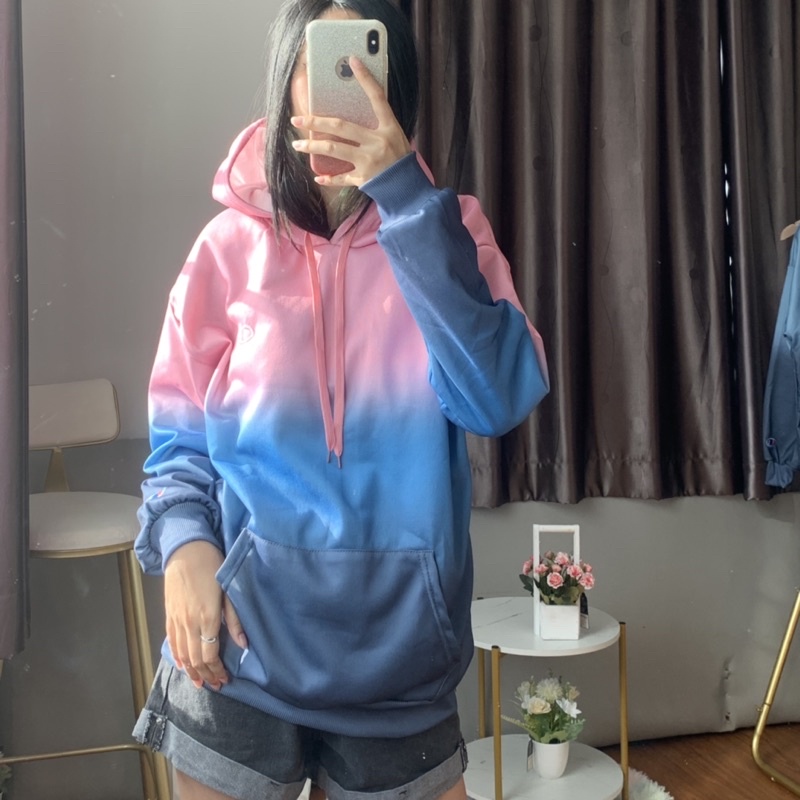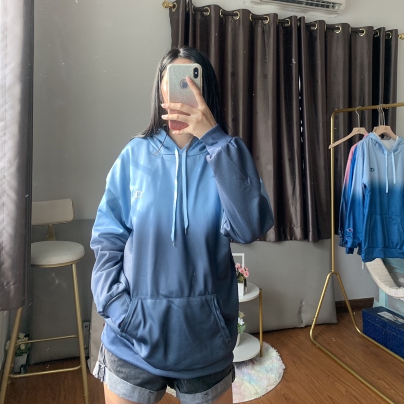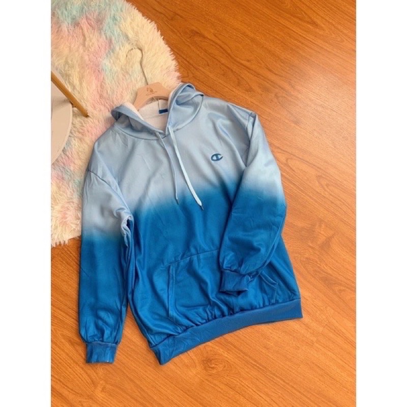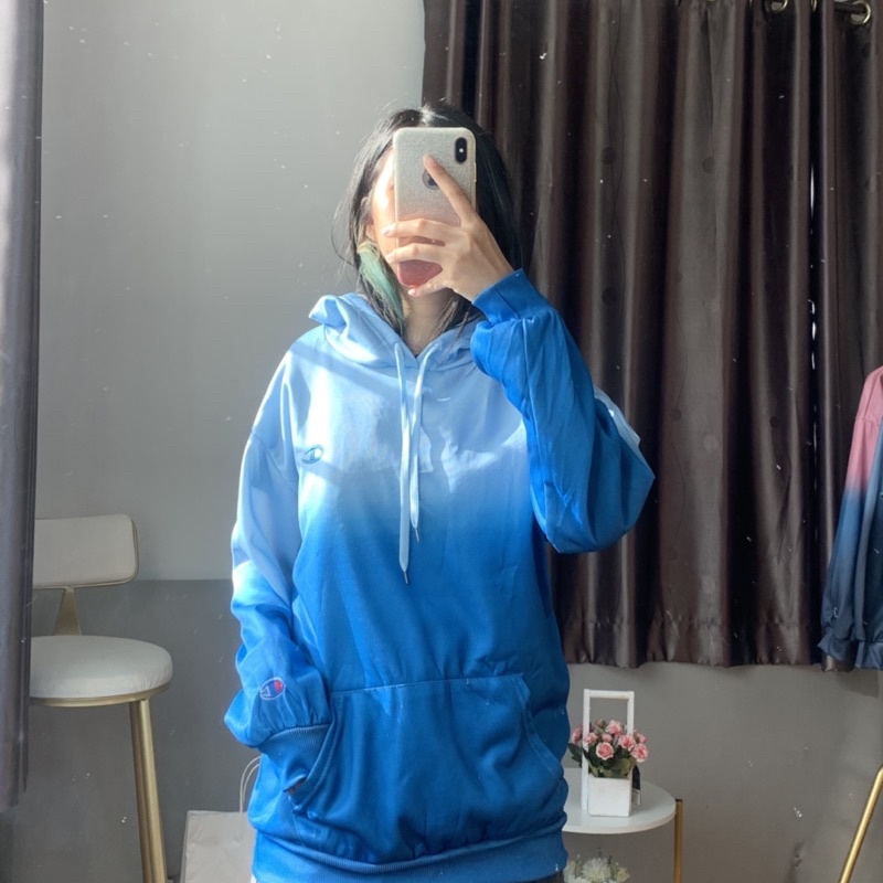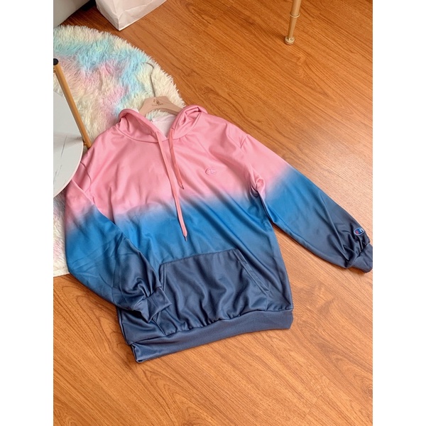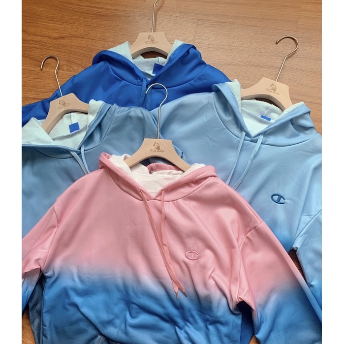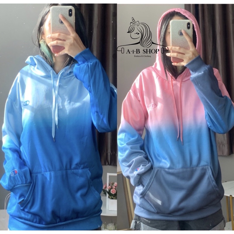 เสื้อกันหนาวกันแดดสไตล์เกาหลี CHAMPlON เสื้อฮู้ดแขนยาวสีมัดย้อมไล่ระดับสี