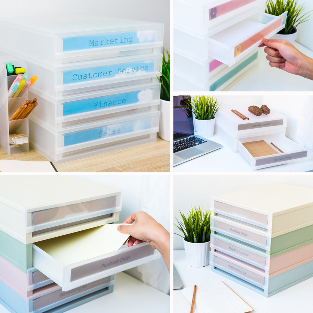 UDEE กล่องลิ้นชักใส่เอกสาร A4_มินิมอล ใส่ A4 ได้300 แผ่นต่อชั้น สามารถตกแต่งเสียบป้ายชื่อด้านหน้าได้