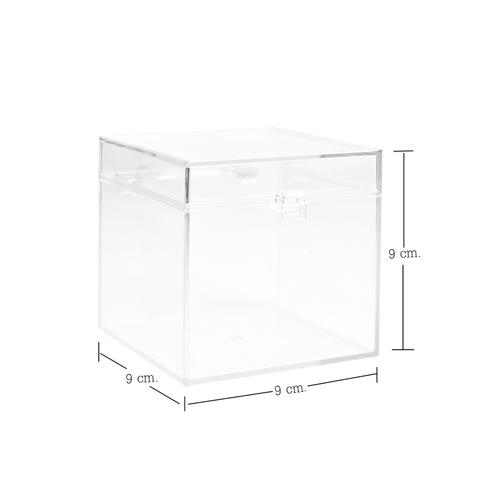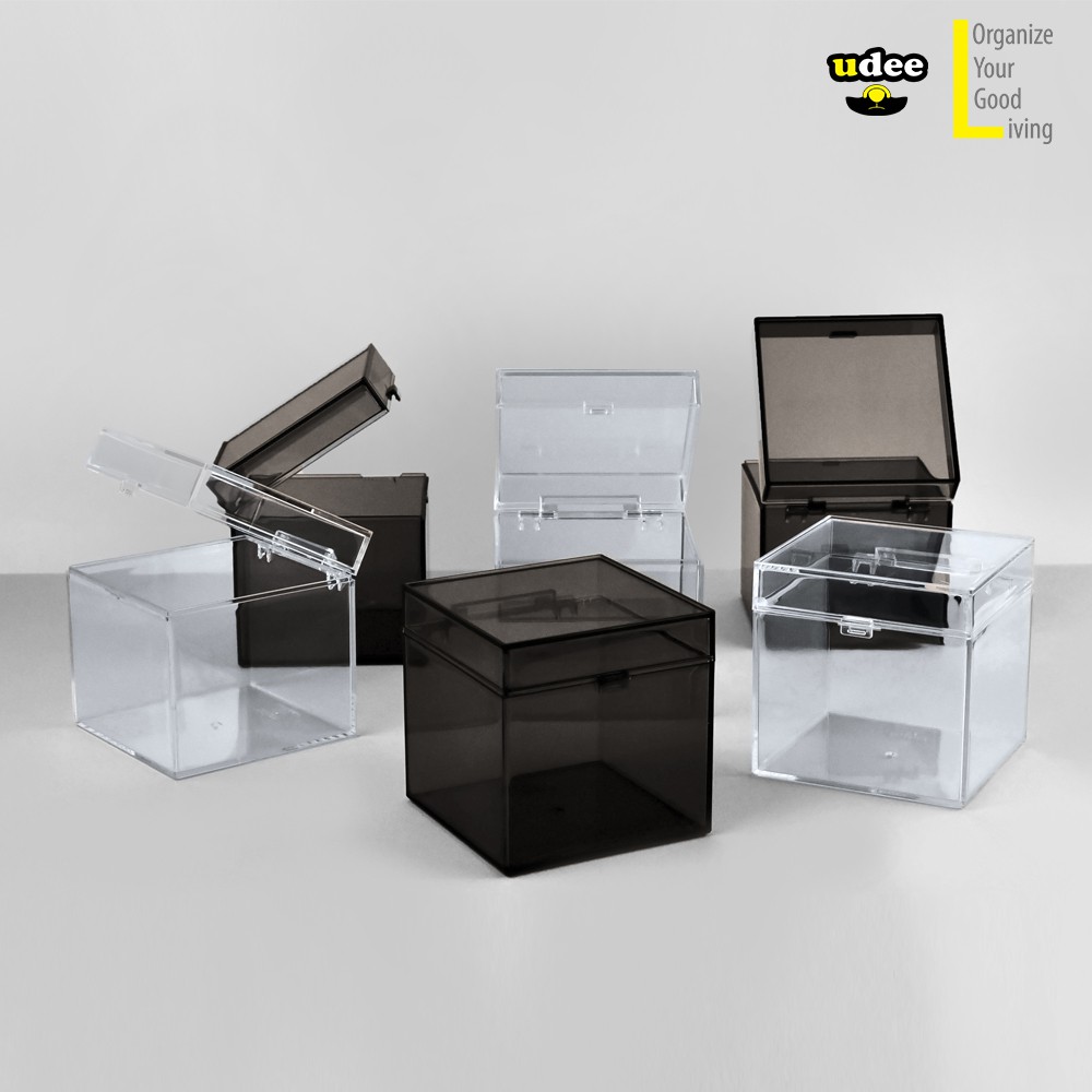 UDEEกล่องทรงลูกบากศ์ฝาบานพับ 9 x 9 x 9 ซม โปรงใส มองเห็นของที่จัดเก็บ ฝาบานพับล็อคแน่น สามารถซ้อนไ ด้