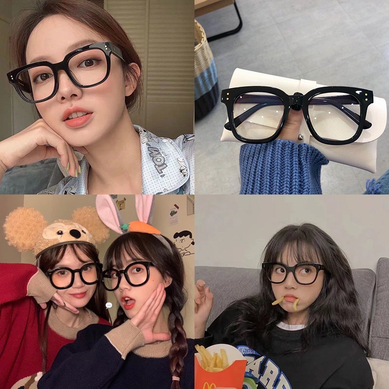 แว่นตาแฟชั่นป้องกันรังสียูวีสไตล์เกาหลีกรอบสีดําสําหรับผู้ชายและผู้หญิง