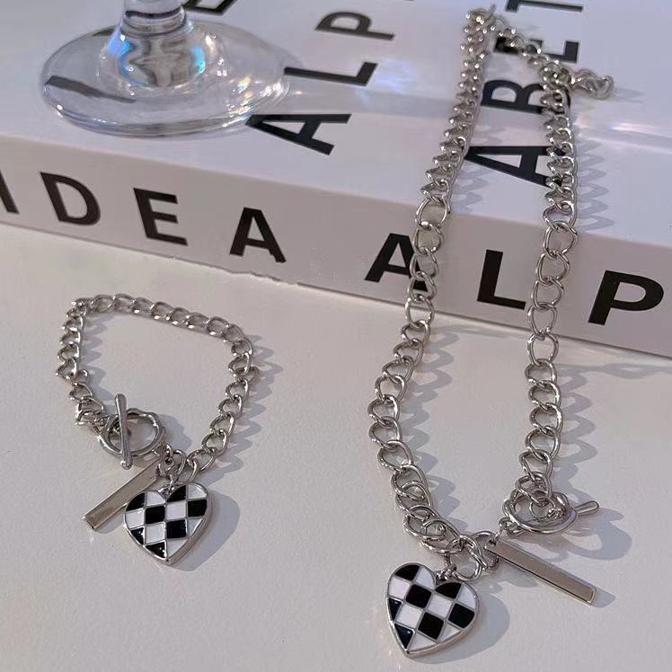 Korea Ins Checkerboard จี้สร้อยคอ สร้อยข้อมือ สไตล์เกาหลี สําหรับผู้หญิง