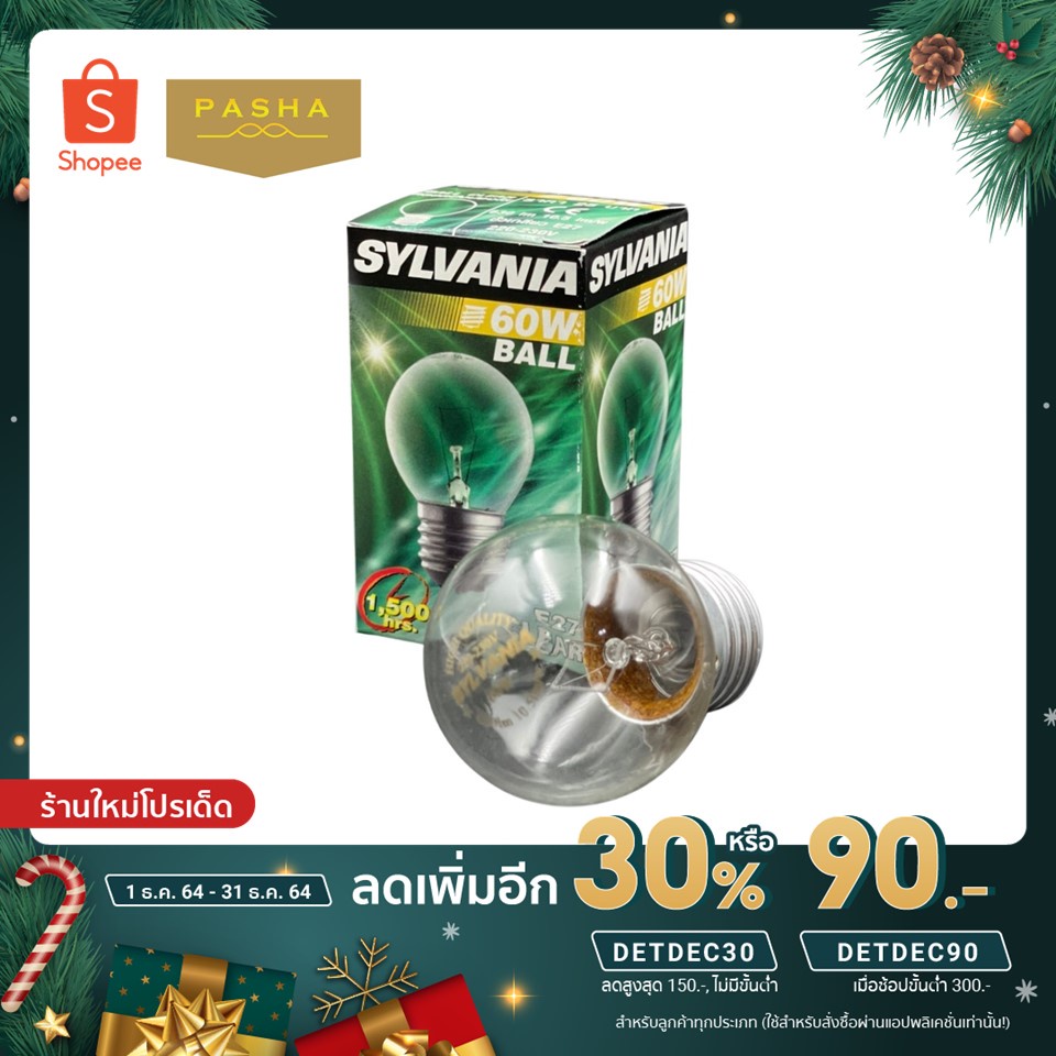 [เหลือ 14.- ใส่โค้ด "DETDEC30"] หลอดไฟแบบไส้ ชนิดใส ยี่ห้อ Sylvania รุ่น 60W Ball Clear (หลอดปิงปองใส) สำหรับเตาน้ำมัน