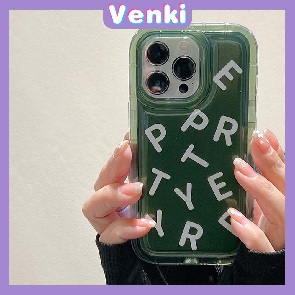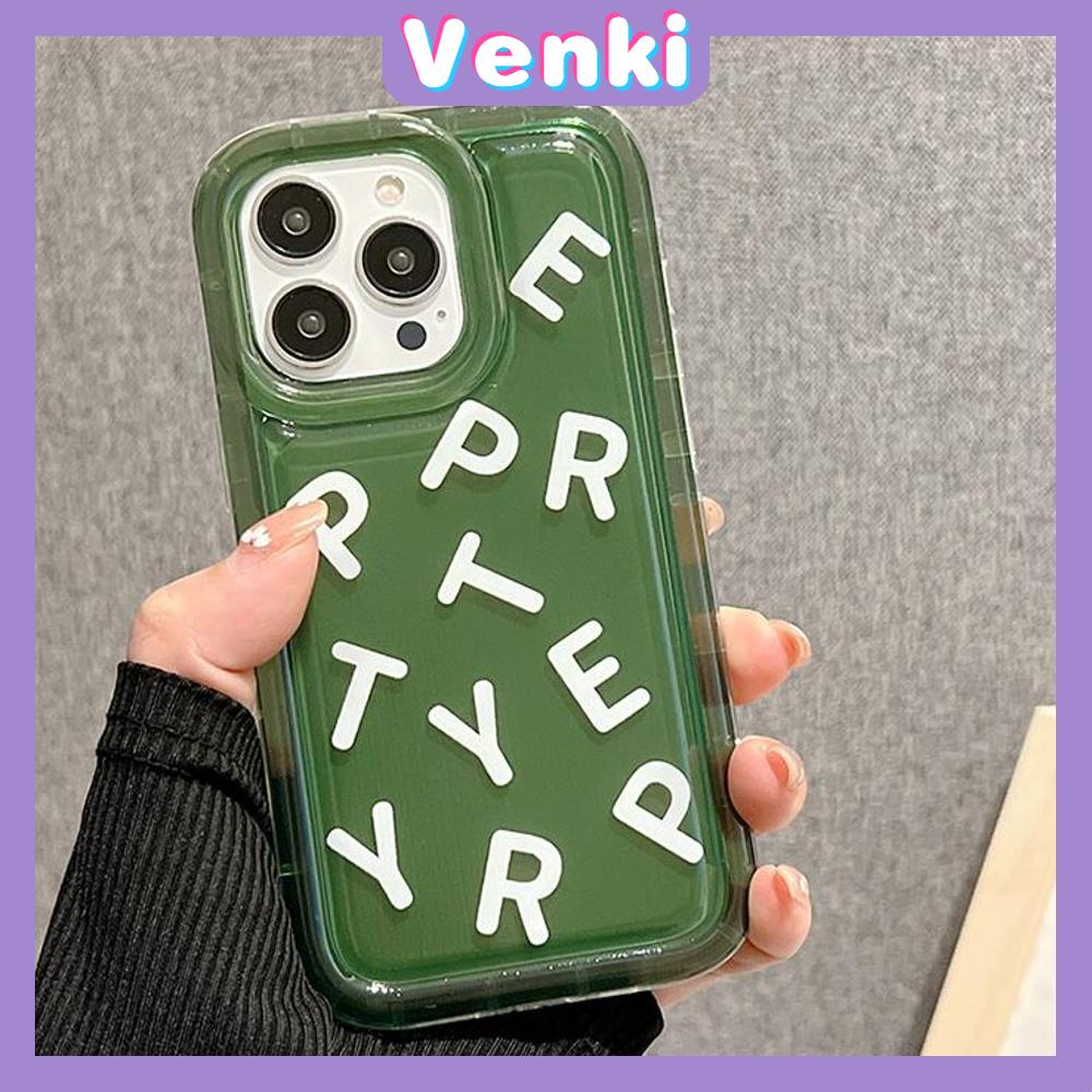 VENKI - เคสสำหรับ iPhone 11 Pro Max TPU Soft Jelly Airbag เคสสีเขียวใส Creative Letters ป้องกันกล้องกันกระแทกสำหรับ iPhone 14 13 12 11 Plus Pro Max 7 Plus X XR