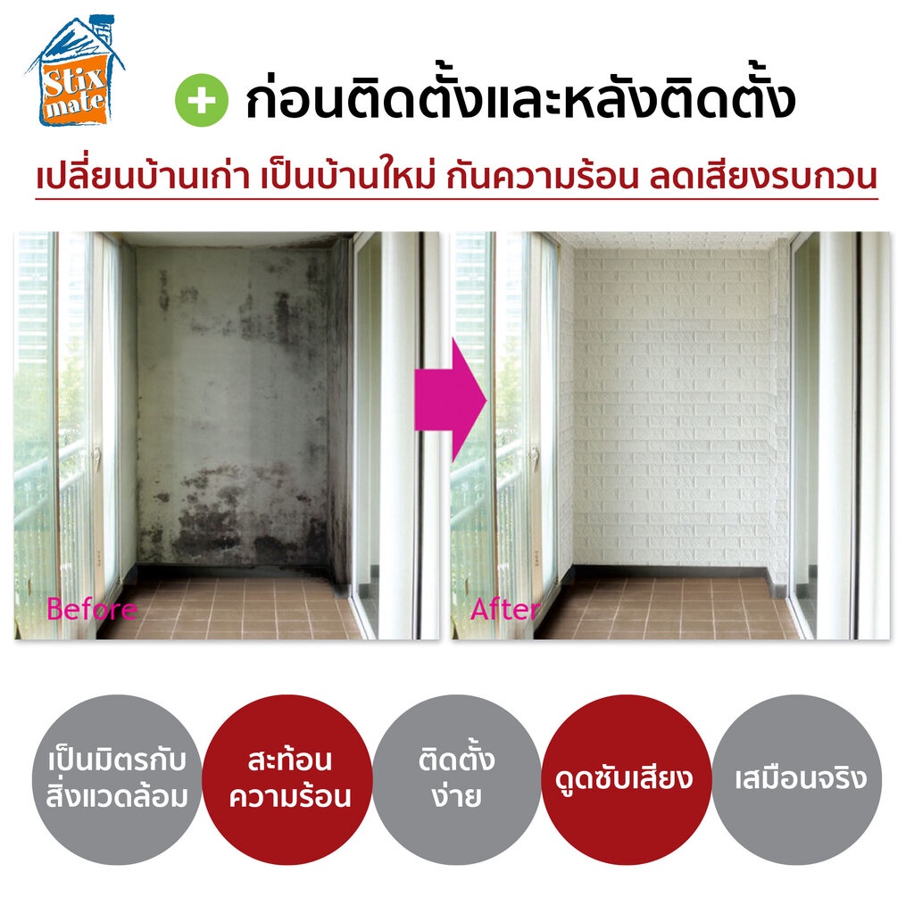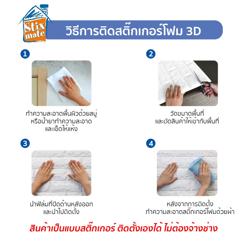 สติ๊กเกอร์โฟมติดผนัง (HTS-01) ตัดขายเป็นเมตร ตกแต่งบ้าน ติดไฟยาก ป้องกันเชื้อรา DIY มีฉนวนกันความร้อน บ้าน/ห้องเย็น ก...