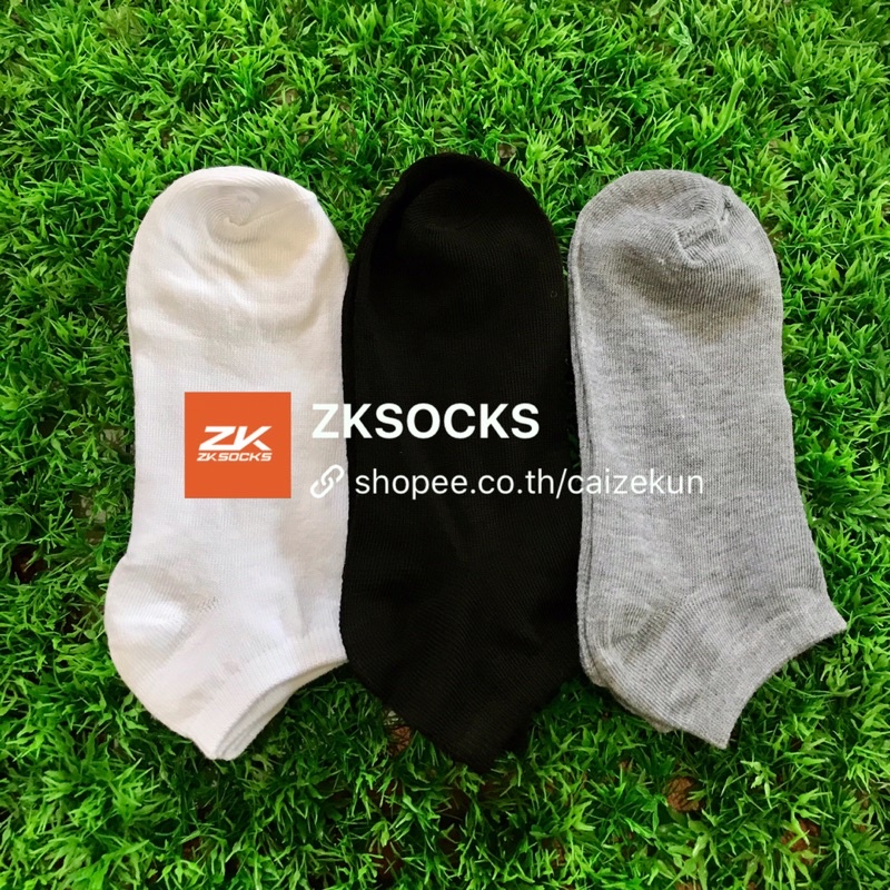 ซื้อ1แถม1⚡️ ถุงเท้าข้อสั้น สีพื้น ระดับตาตุม ขาว ดำ เทา ผ้านิ่มใส่สบาย พร้อมส่ง🎉ZKSOCKS