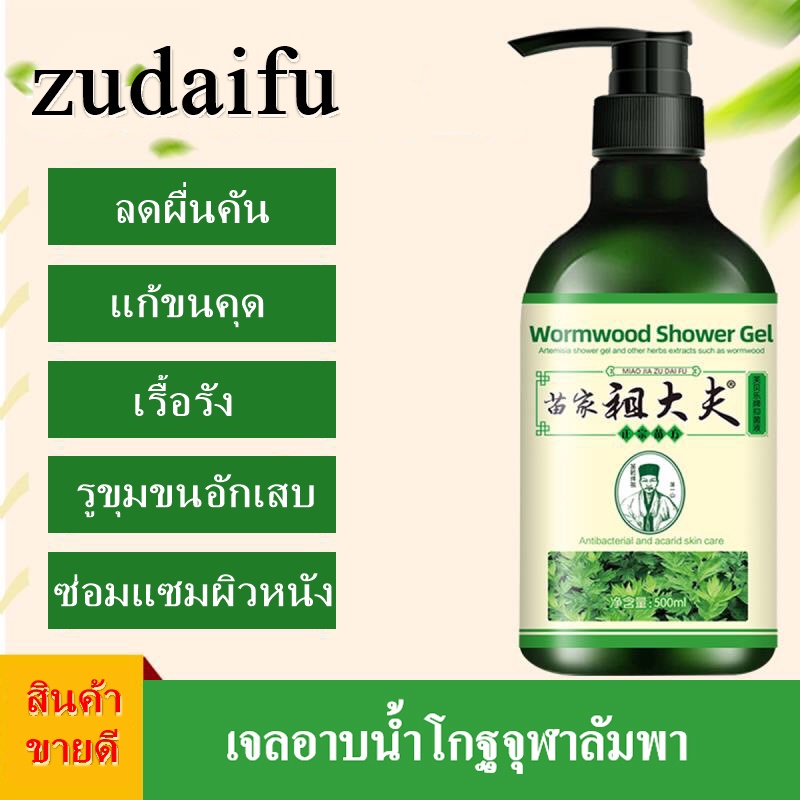 zudaifu ครีมอาบน้ำสมุนไพร สบู่อาบน้ำ เจลอาบน้ำ สูตรโกฐจุฬาลัมพา กำจัดไร ลดผื่นคัน แก้ขนคุด เรื้อรัง ซ่อมแซมผิวหนัง 500ml