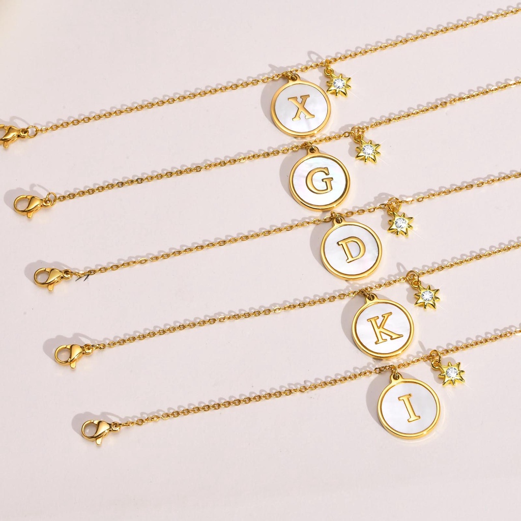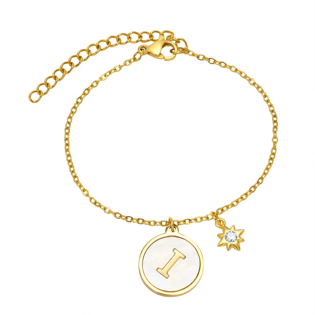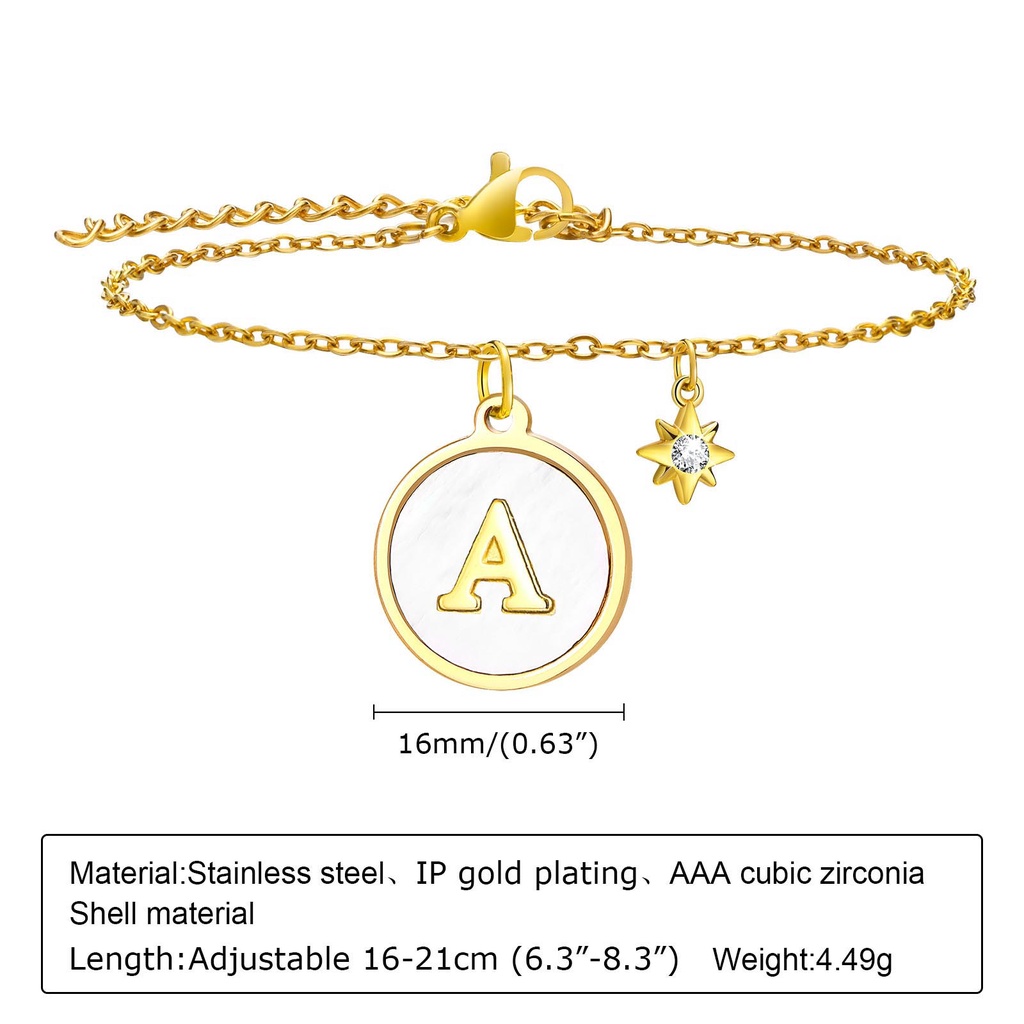 Vnox A-Z Initials สร้อยข้อมือ ประดับพลอย CZ จี้เปลือกหอย สีทอง เครื่องประดับหรูหรา สําหรับผู้หญิง